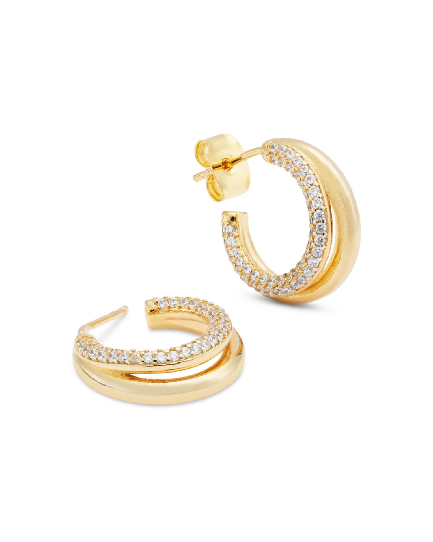 Pave Double Row Open Hoop Earrings in 14K Gold Plated - Exclusive