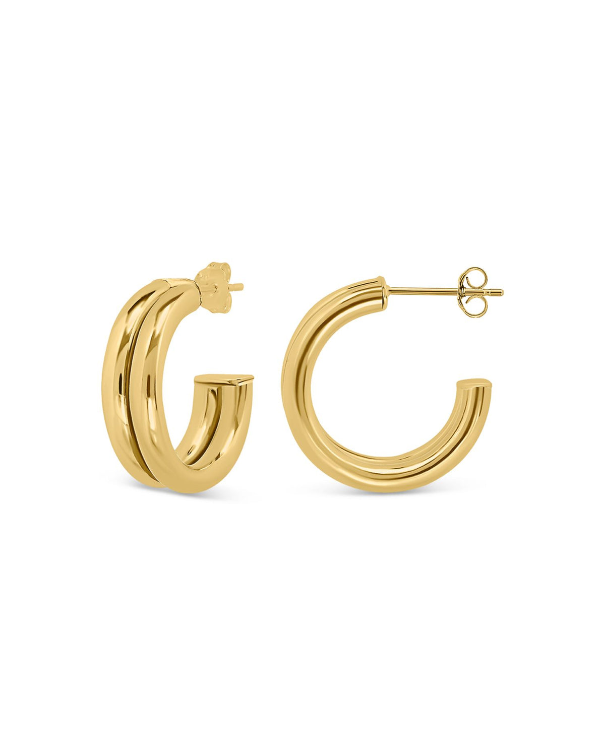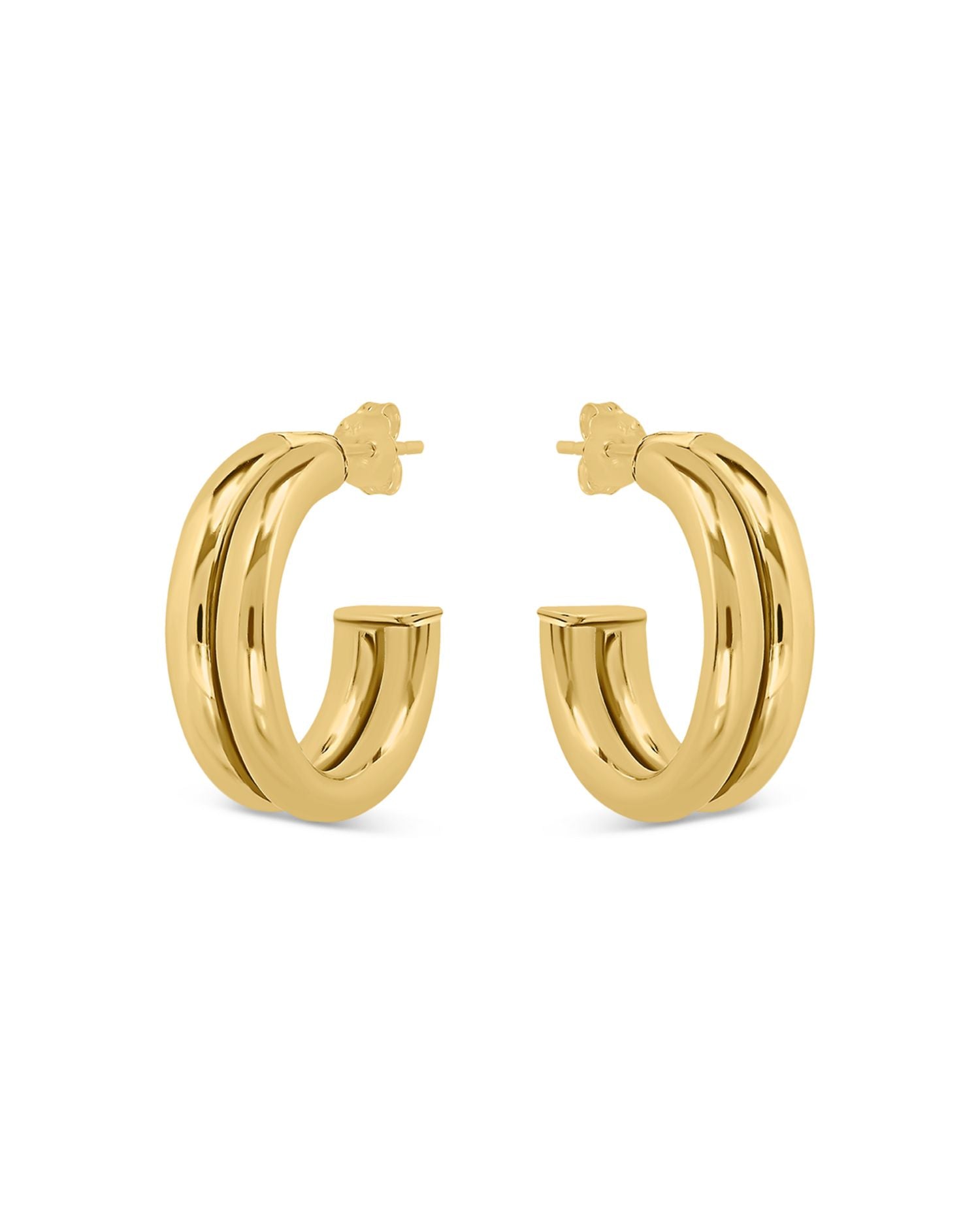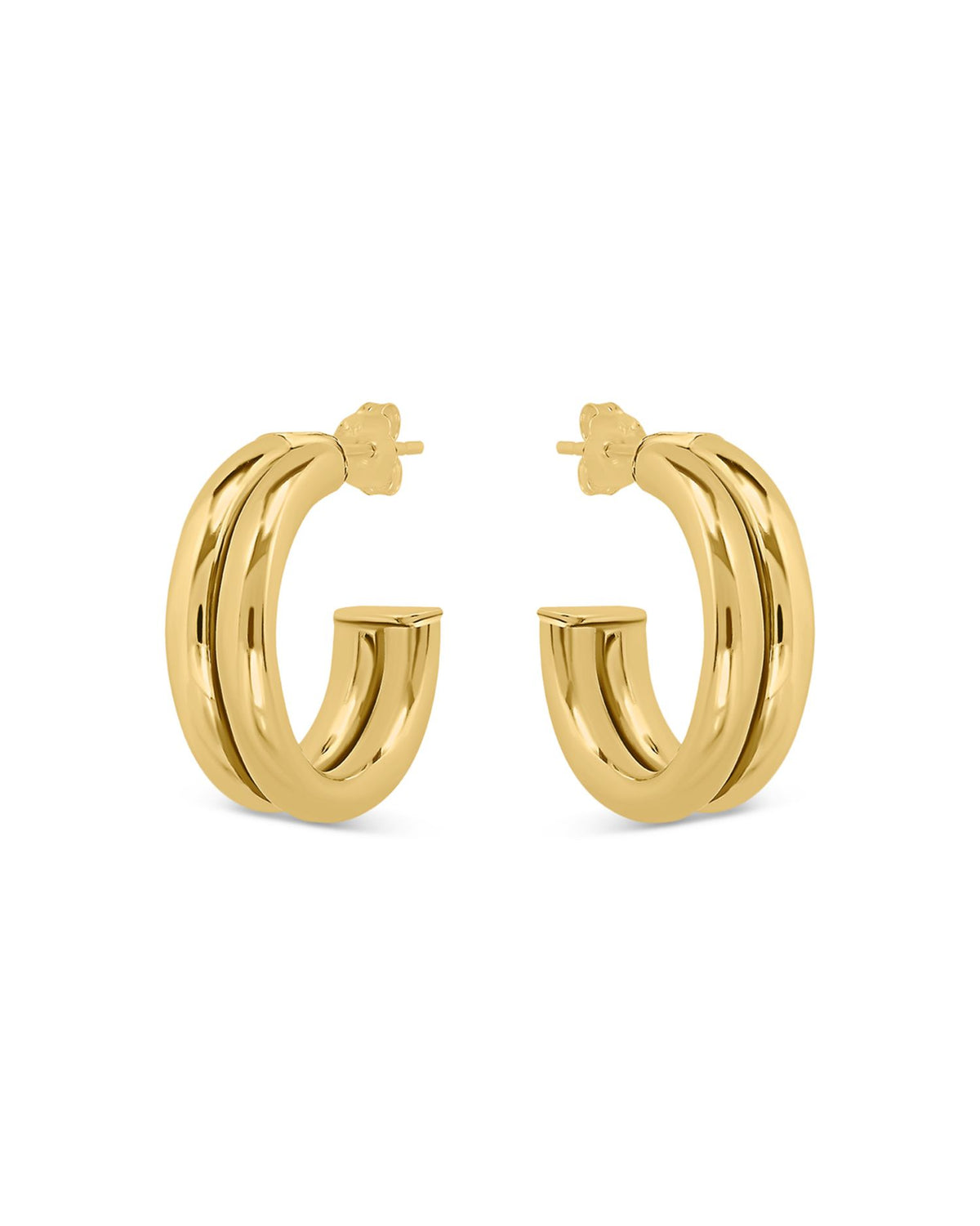 Double Tube Hoop Earrings in 18K Gold Plated Sterling Silver - Exclusive