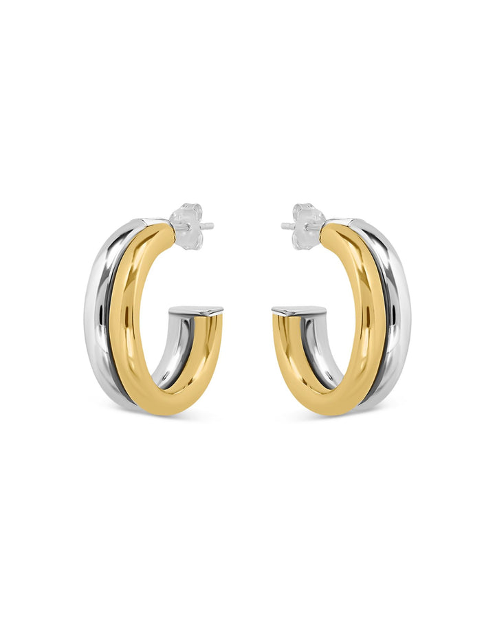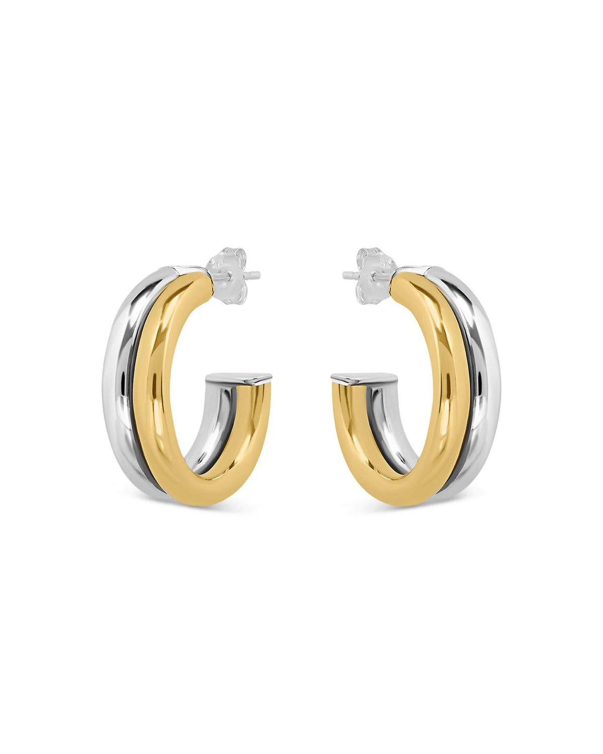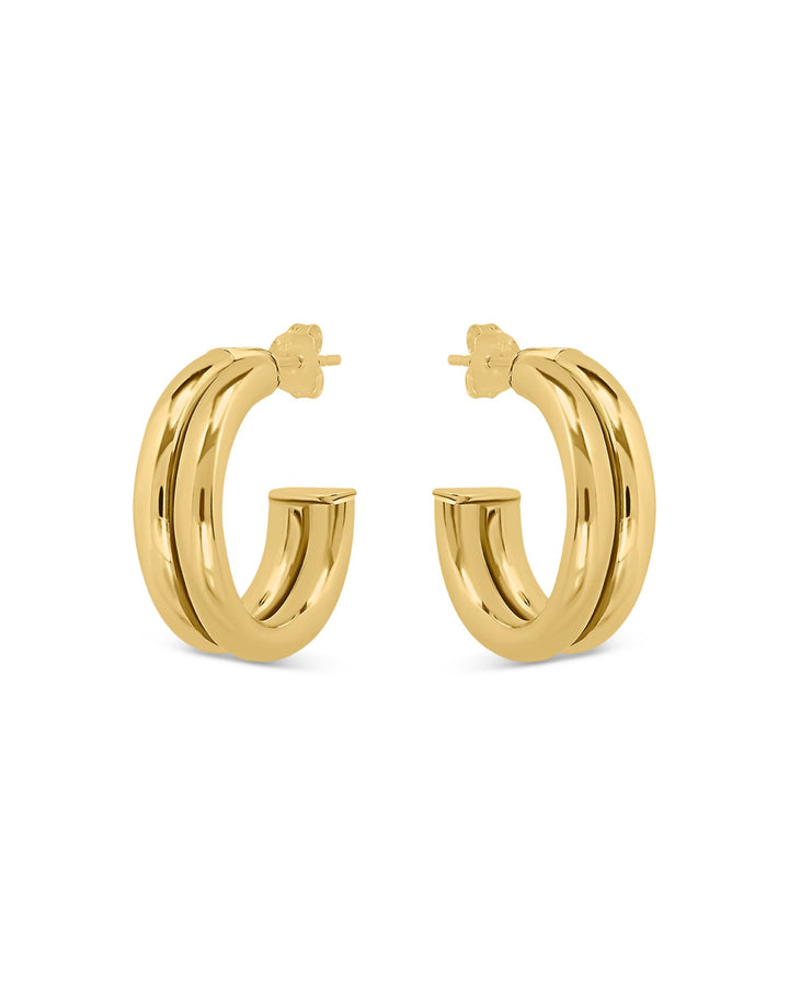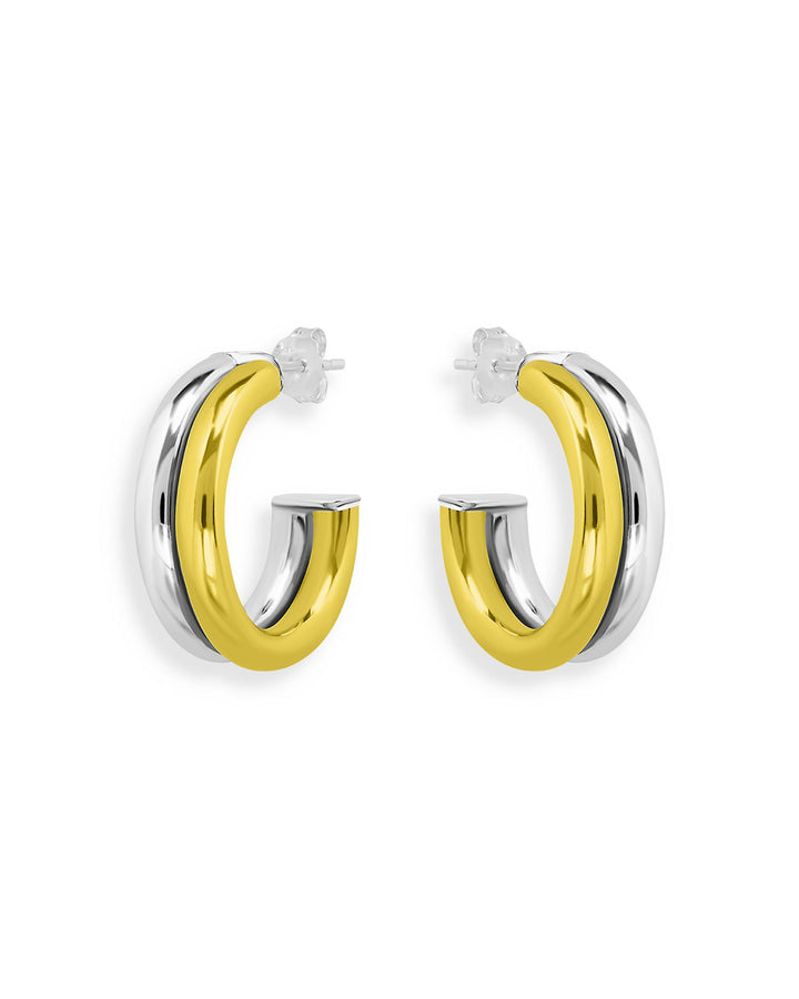 Double Tube Hoop Earrings in 18K Gold Plated Sterling Silver - Exclusive