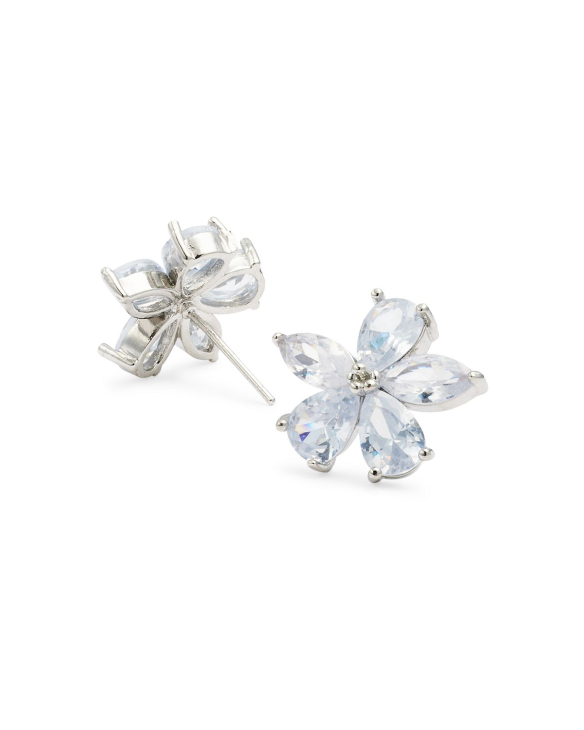These Flower Stud Earrings by AQUA are a delicate and feminine design that adds a touch of nature-inspired beauty to your look. The cubic zirconia accents give the flower petals a subtle sparkle, while the 14K silver plating over brass adds a luxe finish. Perfect for everyday wear or adding a soft touch to your evening look, these earrings are both charming and elegant.