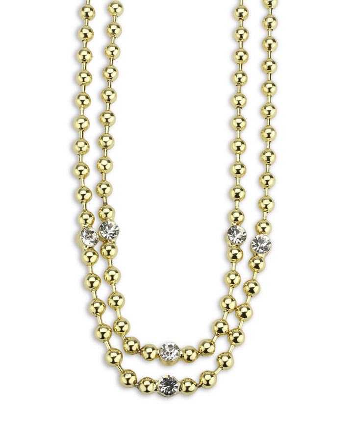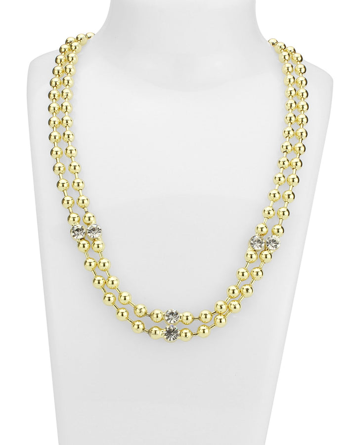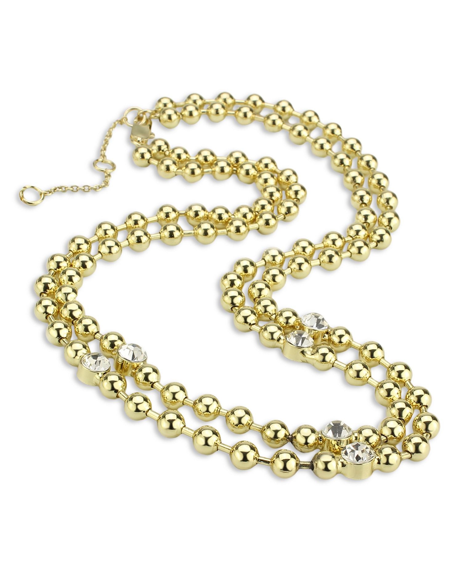 Cubic Zirconia Beaded Double Row Collar Necklace in Gold Tone, 16"-18" - Exclusive