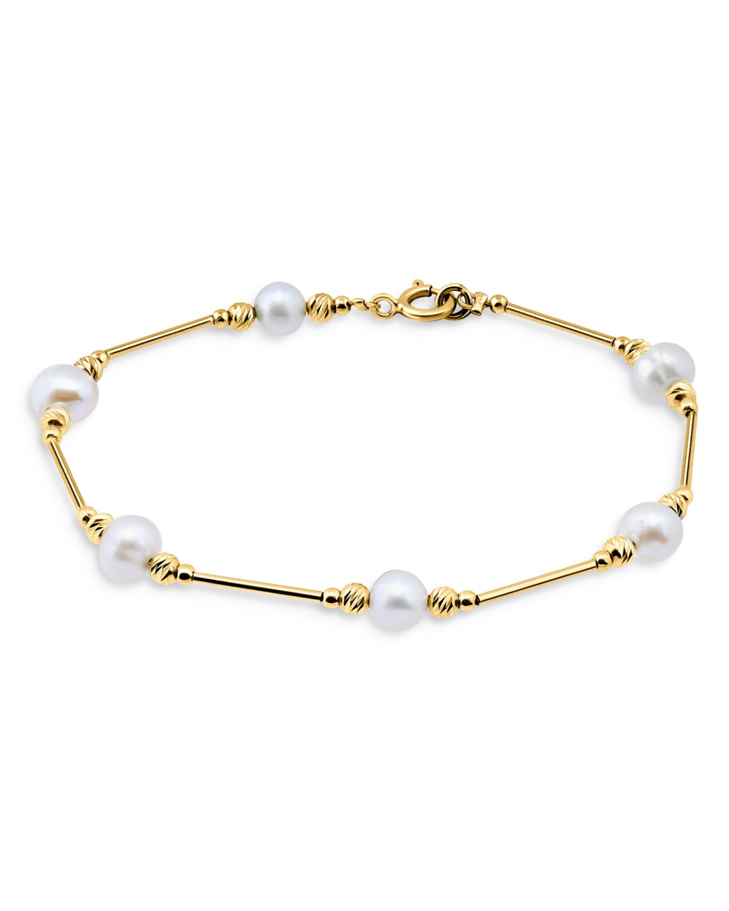 Cultured Freshwater Pearl Bar Bracelet in 18K Gold Plated Sterling Silver - Exclusive