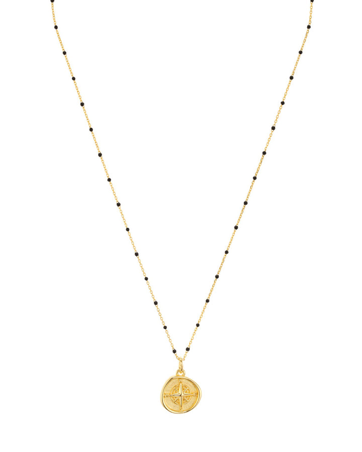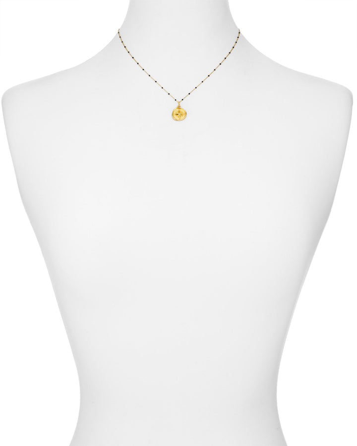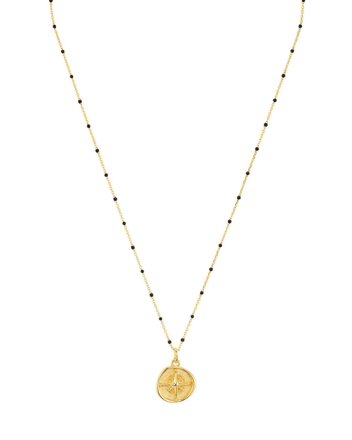 Crafted in 18K gold-plated sterling silver with enamel. Adjustable length: 16 inches with 2' extension; pendant drop: 0.5 inches. Lobster clasp closure.