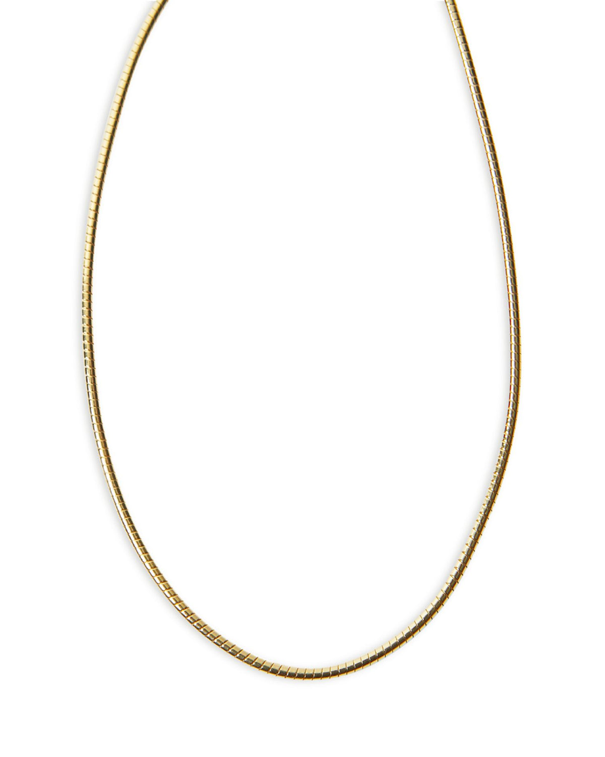 This Tubogas Chain Collar Necklace, 17'-19' by Argento Vivo offers a sleek and sophisticated design with a flexible, tubular chain that wraps comfortably around the neck. The 18K gold-plated sterling silver construction makes it a luxurious statement piece that adds a bold touch to any outfit.