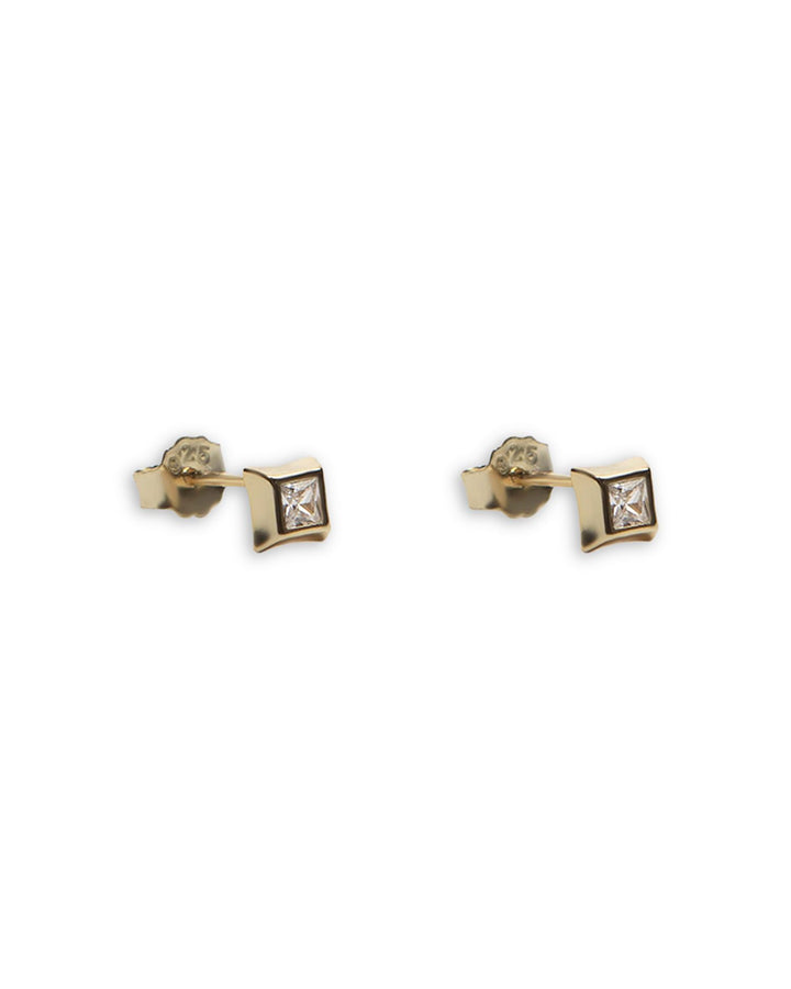 Princess Cut Cubic Zirconia Stud Earrings in 18K Gold Plated Sterling Silver