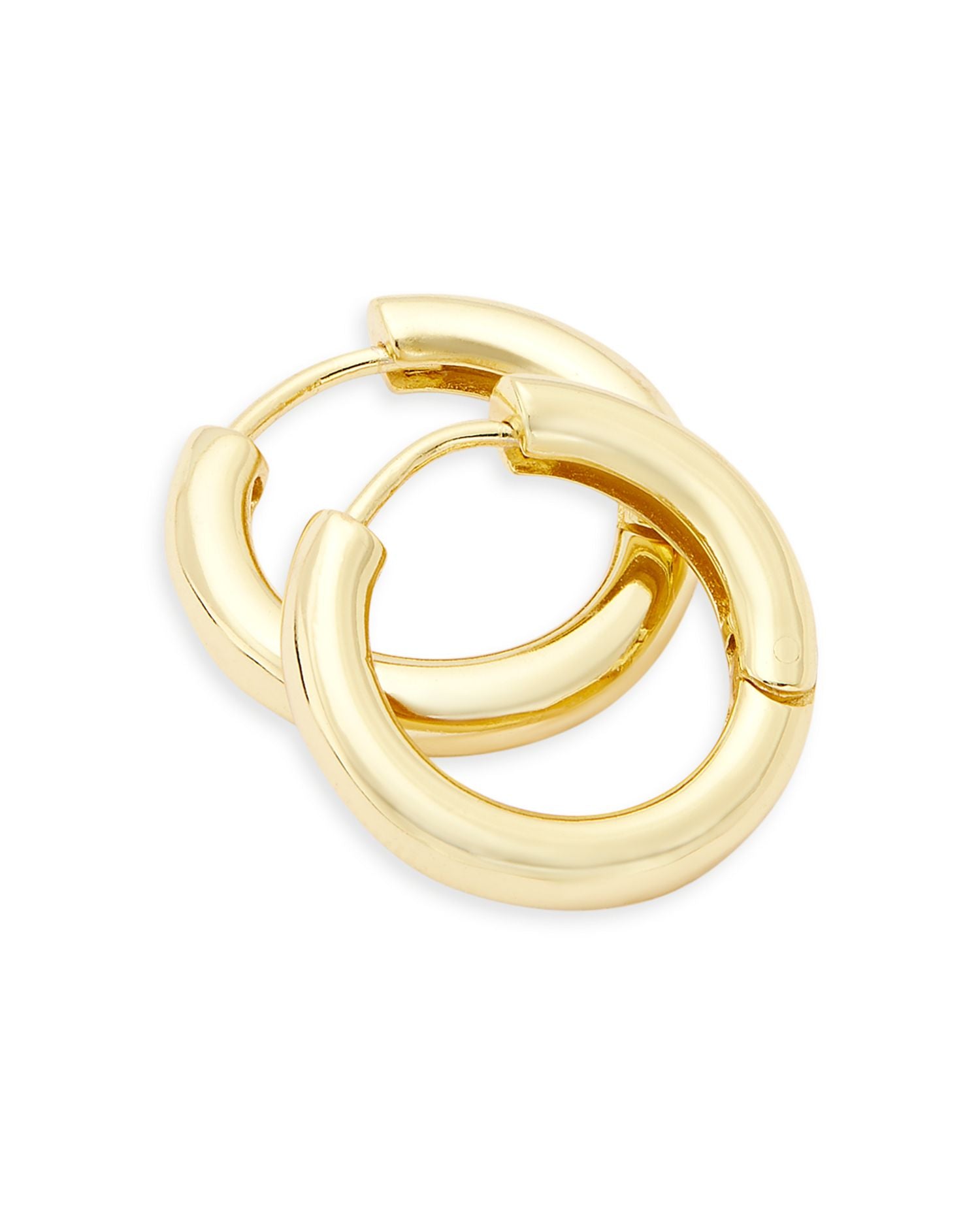 Made with sterling silver and 18K gold plating, these earrings feature a 0.5' diameter and an endless circular clasp for seamless wear.