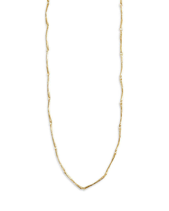This Large Molten Bar Necklace by Argento Vivo makes a bold statement with its sculptural molten bar design. Its rich gold-plated finish and adjustable chain length add a luxurious touch, making it suitable for both day and evening wear.