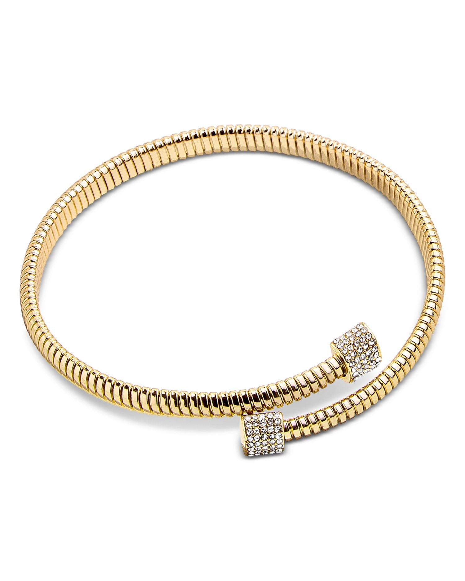 This Autumn Pavé Coiled Bypass Bangle Bracelet by BAUBLEBAR exudes elegance with its gold-tone finish and sparkling glass crystals. The coiled bypass design adds a modern twist, making it an ideal statement piece for any occasion.