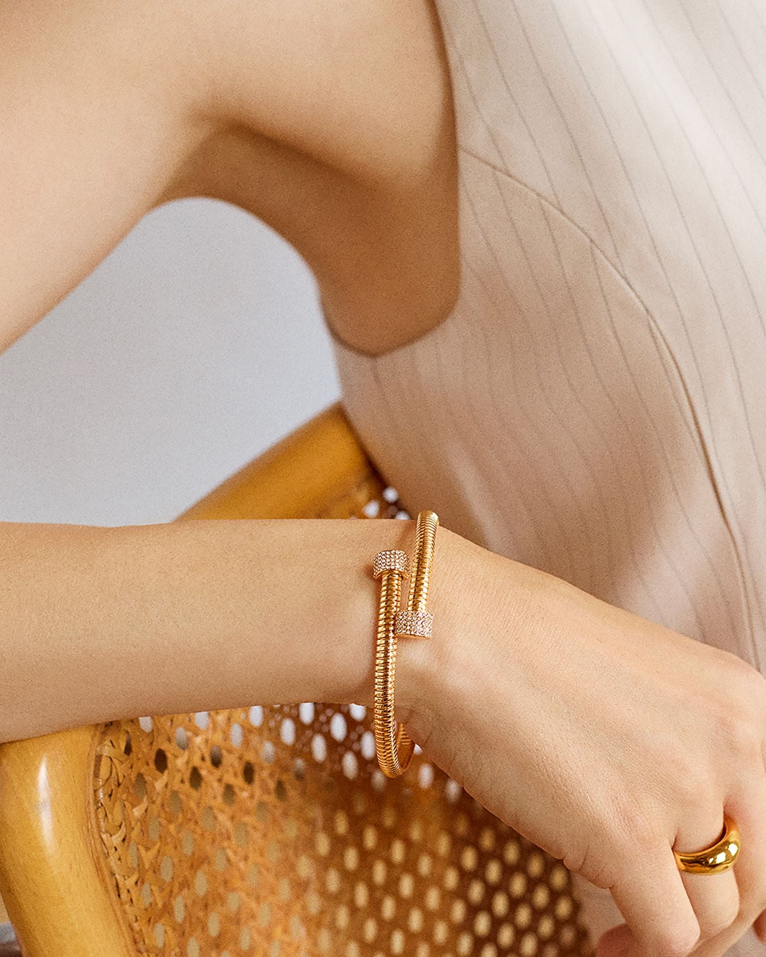 Autumn Pavé Coiled Bypass Bangle Bracelet in Gold Tone