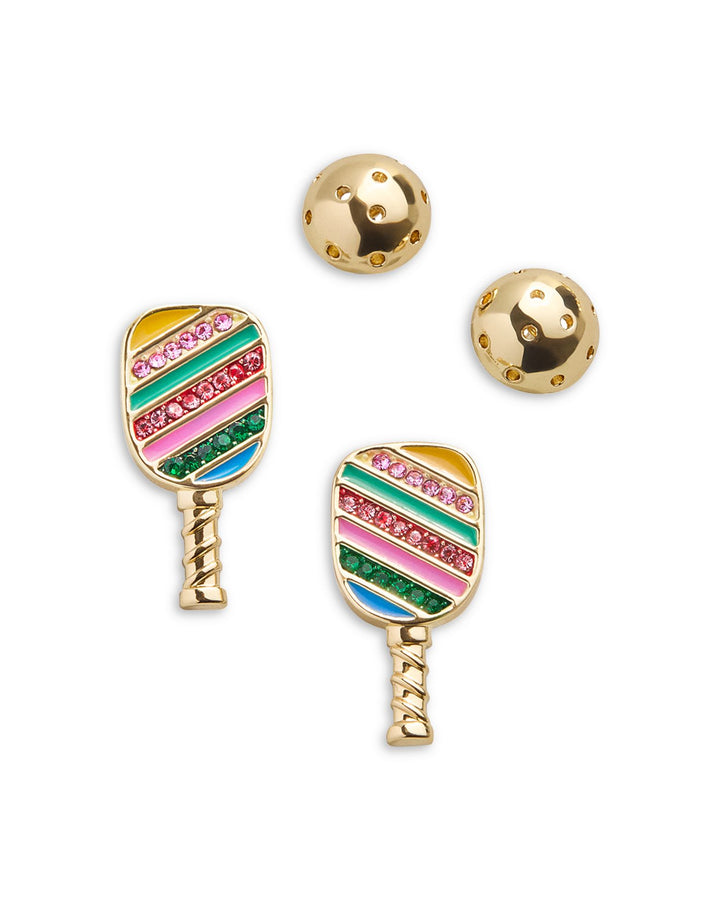 Paddles Up Pavé Paddle & Ball Stud Earrings, Set of 2