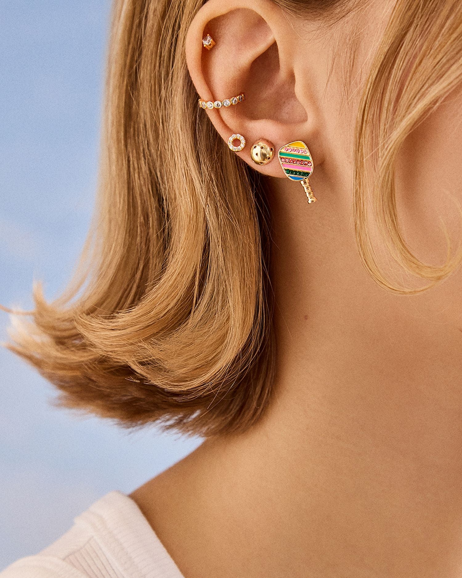 These Paddles Up Pavé Paddle & Ball Stud Earrings by BAUBLEBAR bring a playful and sporty vibe to your jewelry collection. Part of the Paddles Up collection, this set of two features whimsical paddle and ball designs with sparkling pavé and enamel details.