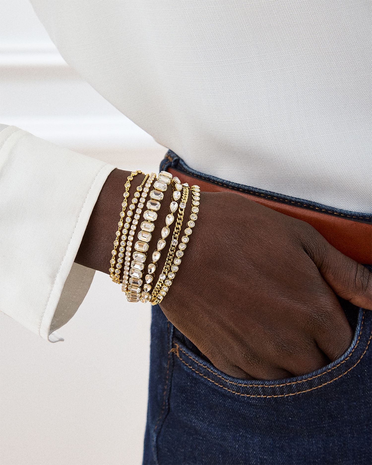 This Angie Crystal Tennis Bracelet by BAUBLEBAR exudes timeless elegance with its sparkling crystal accents. Part of the Angie collection, its classic design makes it a versatile accessory for both special events and everyday wear.