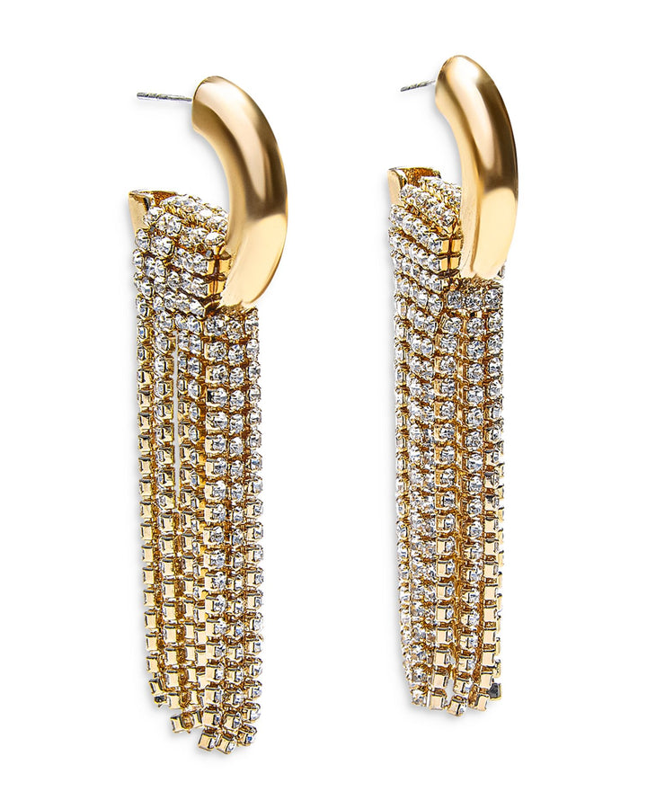 These Autumn Crystal Chain Drape Hoop Earrings by BAUBLEBAR bring a touch of drama and sparkle to your look. Part of the Autumn collection, their cascading crystal chains create a bold statement, perfect for adding elegance to eveningwear.