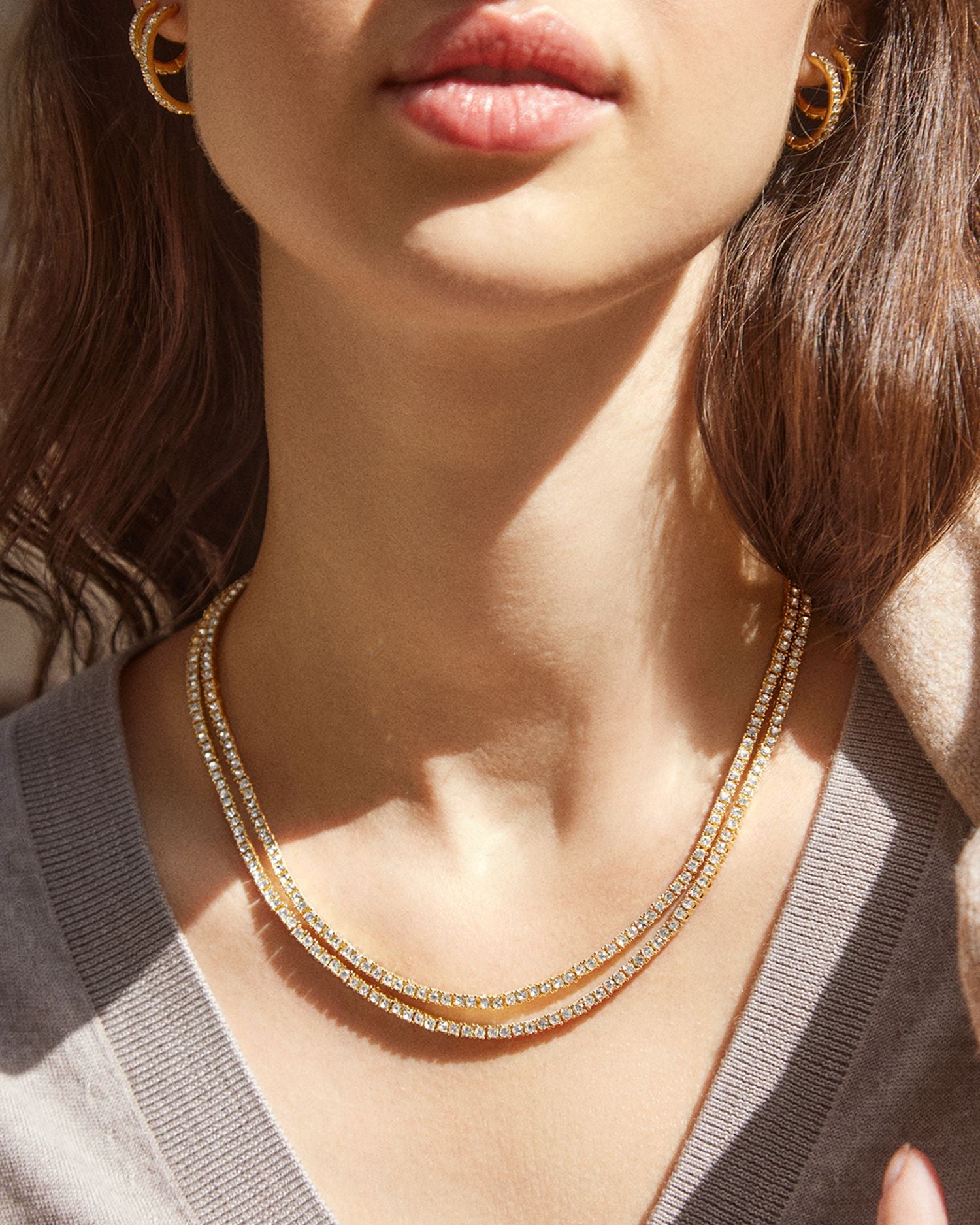 This Becca Layered Crystal Tennis Necklace by BAUBLEBAR adds a touch of glamour with its double-layered crystal design. Its versatile length and refined sparkle make it perfect for elevating both casual and formal ensembles.