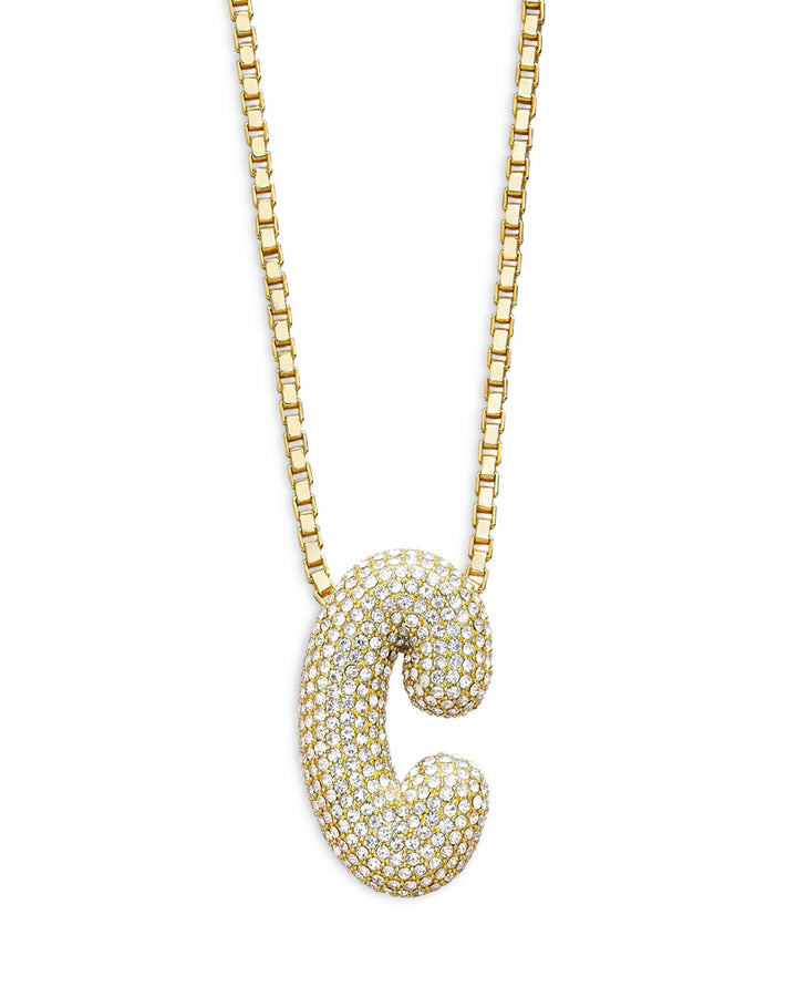 Pavé Bubble Initial Pendant Necklace, 18'-21'