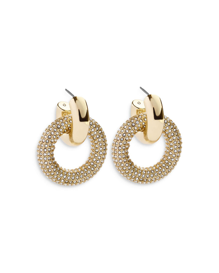 These Donna Pavé Circle Charm Huggie Hoop Earrings by BAUBLEBAR combine classic huggie hoops with a touch of sparkle. Part of the Donna collection, their pavé-embellished charm adds elegance and versatility, perfect for both everyday and evening wear.