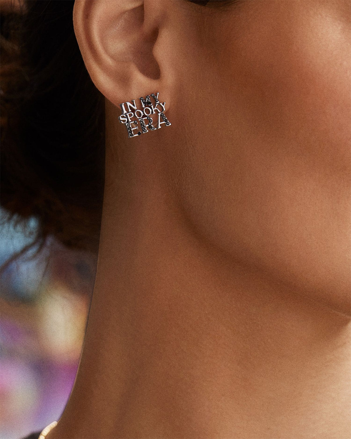 Spooky Era Pavé Text Stud Earrings in Black Tone