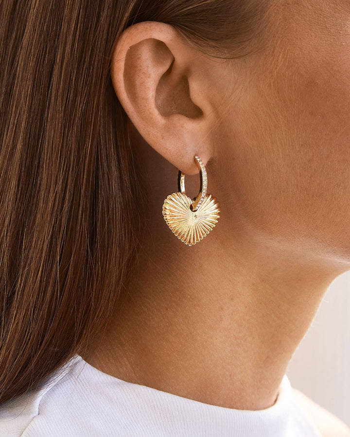 Paxton Pavé Sunray Heart Dangle Huggie Hoop Earrings