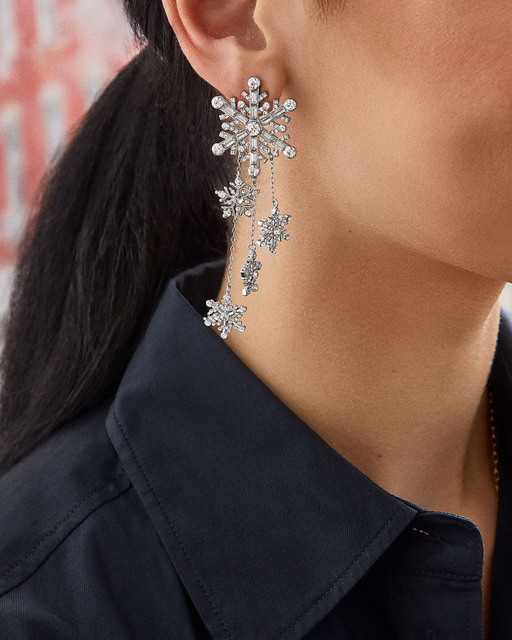 These Best In Snow Crystal Snowflake Statement Earrings by BAUBLEBAR bring winter elegance to your holiday wardrobe. Part of the Best In Snow collection, their intricate snowflake design with shimmering crystals makes them perfect for seasonal celebrations.