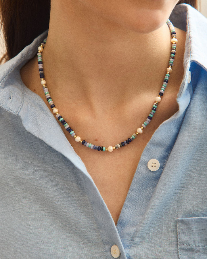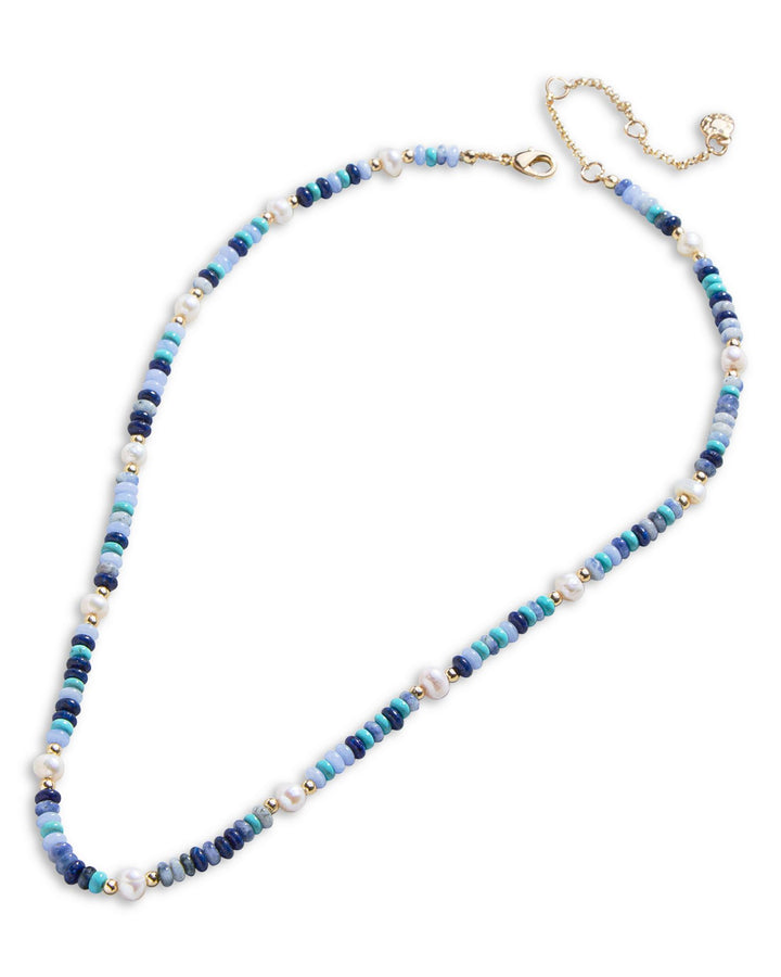 This Kai Mixed Gemstone Beaded Strand Necklace by BAUBLEBAR is a vibrant and eclectic accessory. Part of the Kai collection, it features a dynamic mix of gemstones and beads, making it a perfect choice for adding a pop of color and texture to any outfit.