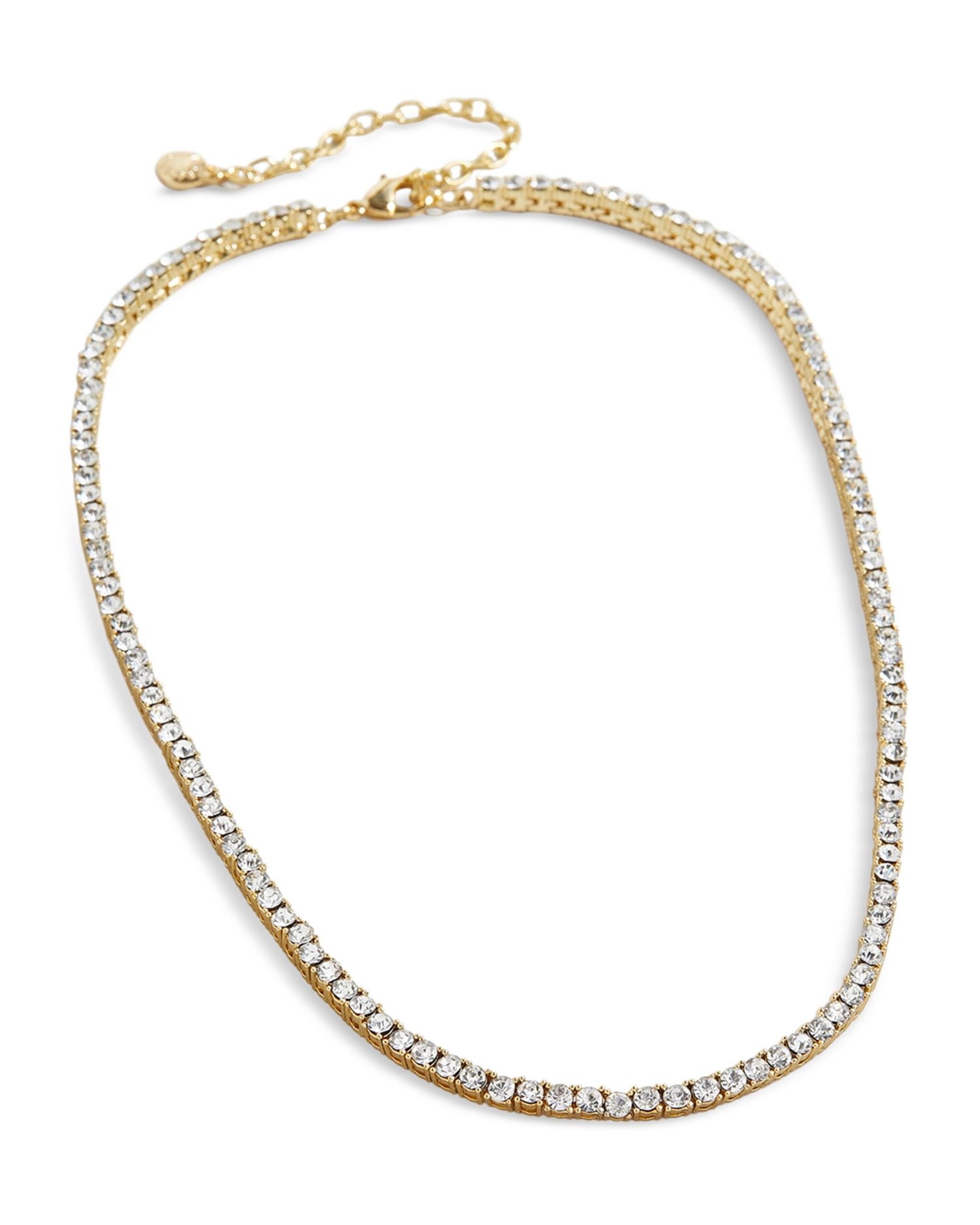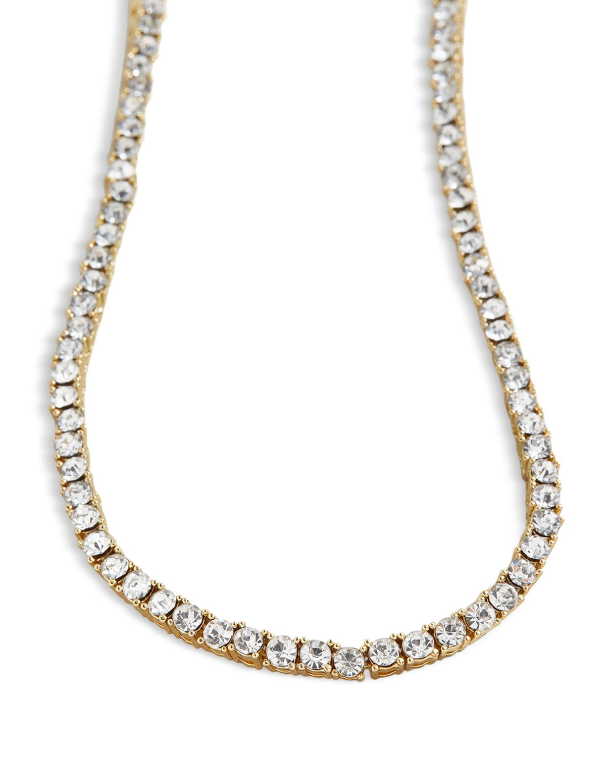 This Bennett Crystal Tennis Necklace by BAUBLEBAR exudes timeless elegance with its sparkling crystal design. Perfect for layering or wearing solo, its adjustable length ensures versatile styling for any occasion.