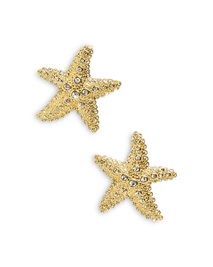These Sea Star Earrings by BAUBLEBAR are a playful and chic accessory inspired by the ocean. Their bold starfish design and sparkling glass details make them a standout piece for casual or resort wear.