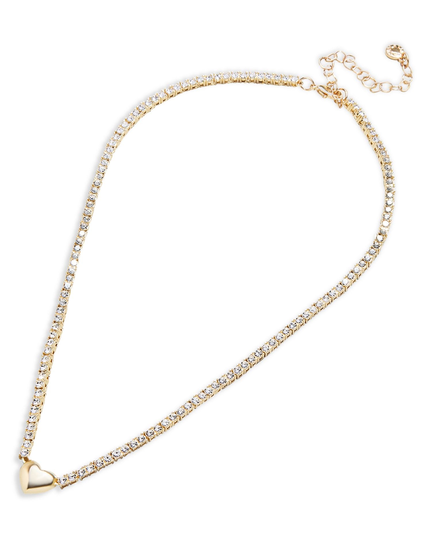 Polished Heart Crystal Tennis Necklace, 17-20"