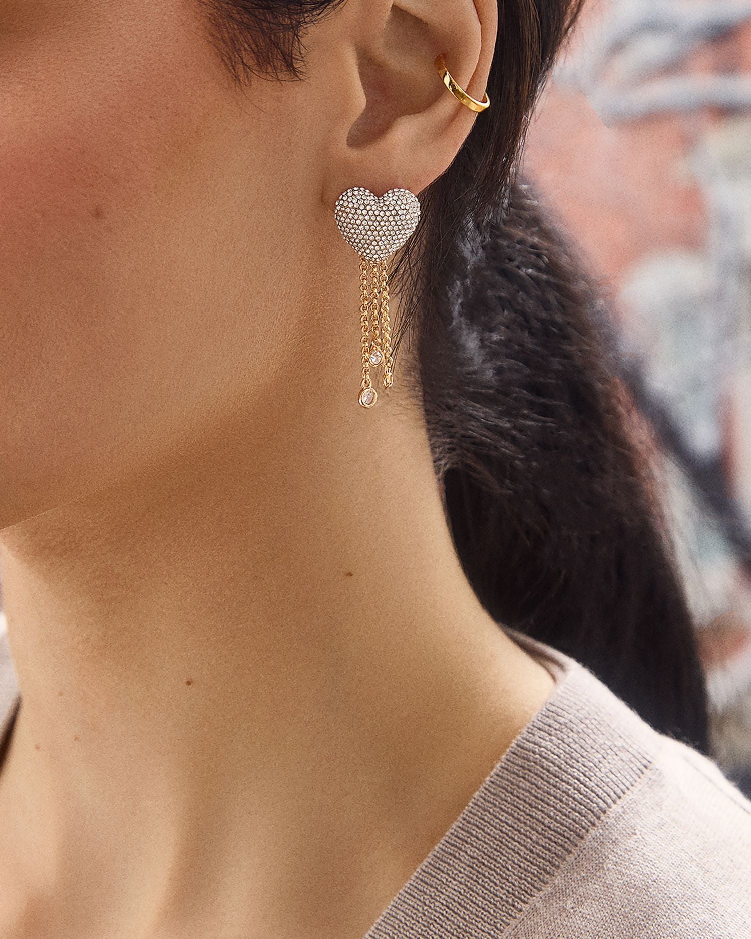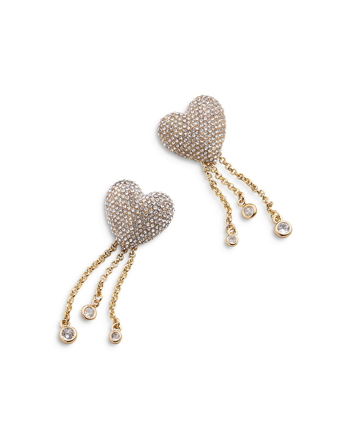 Shay Pavé Heart & Chain Drop Earrings in Gold Tone