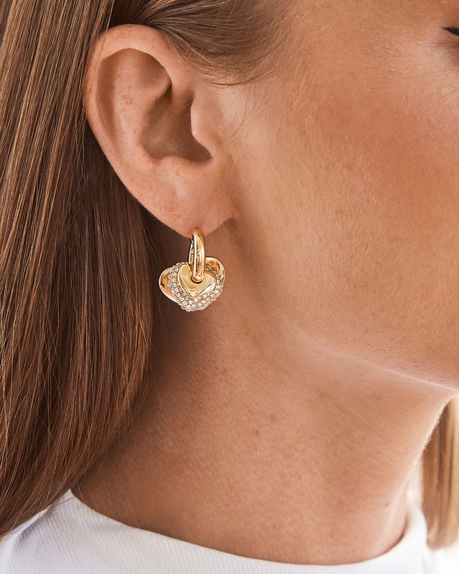 Alexia Pavé Double Heart Dangle Huggie Hoop Earrings