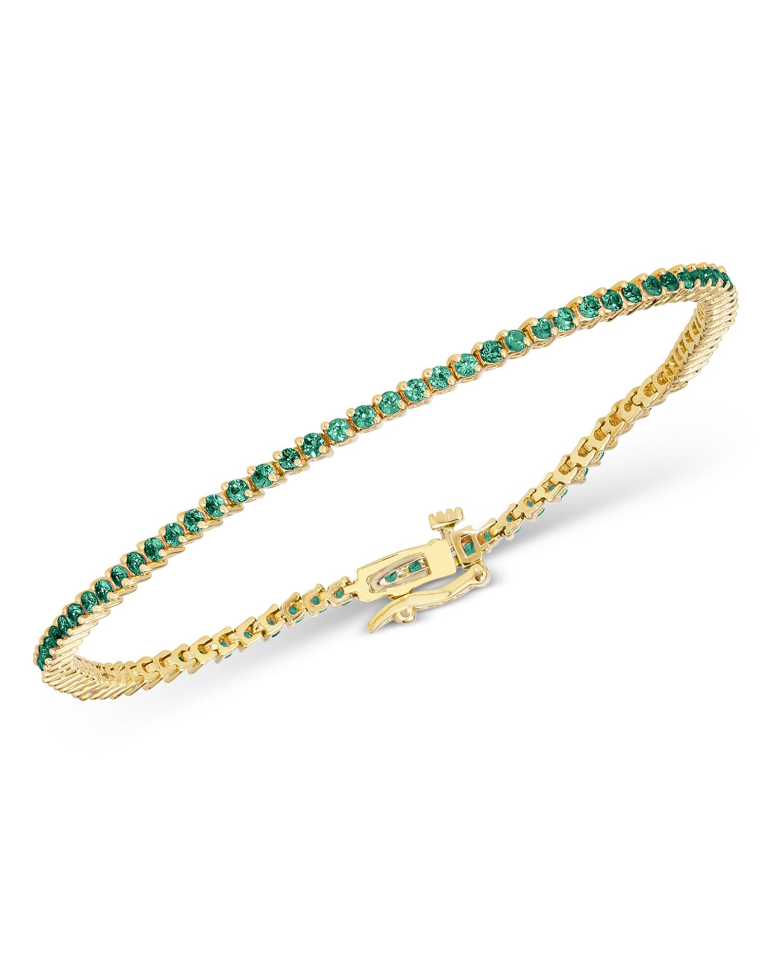 This Emerald Tennis Bracelet by Bloomingdale's Fine Collection brings vibrant sophistication to a classic design. Adorned with rich emeralds, this piece is perfect for adding a pop of color and elegance to your jewelry collection. Ideal for both formal and everyday wear.
