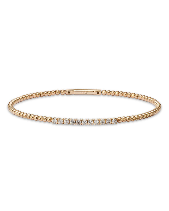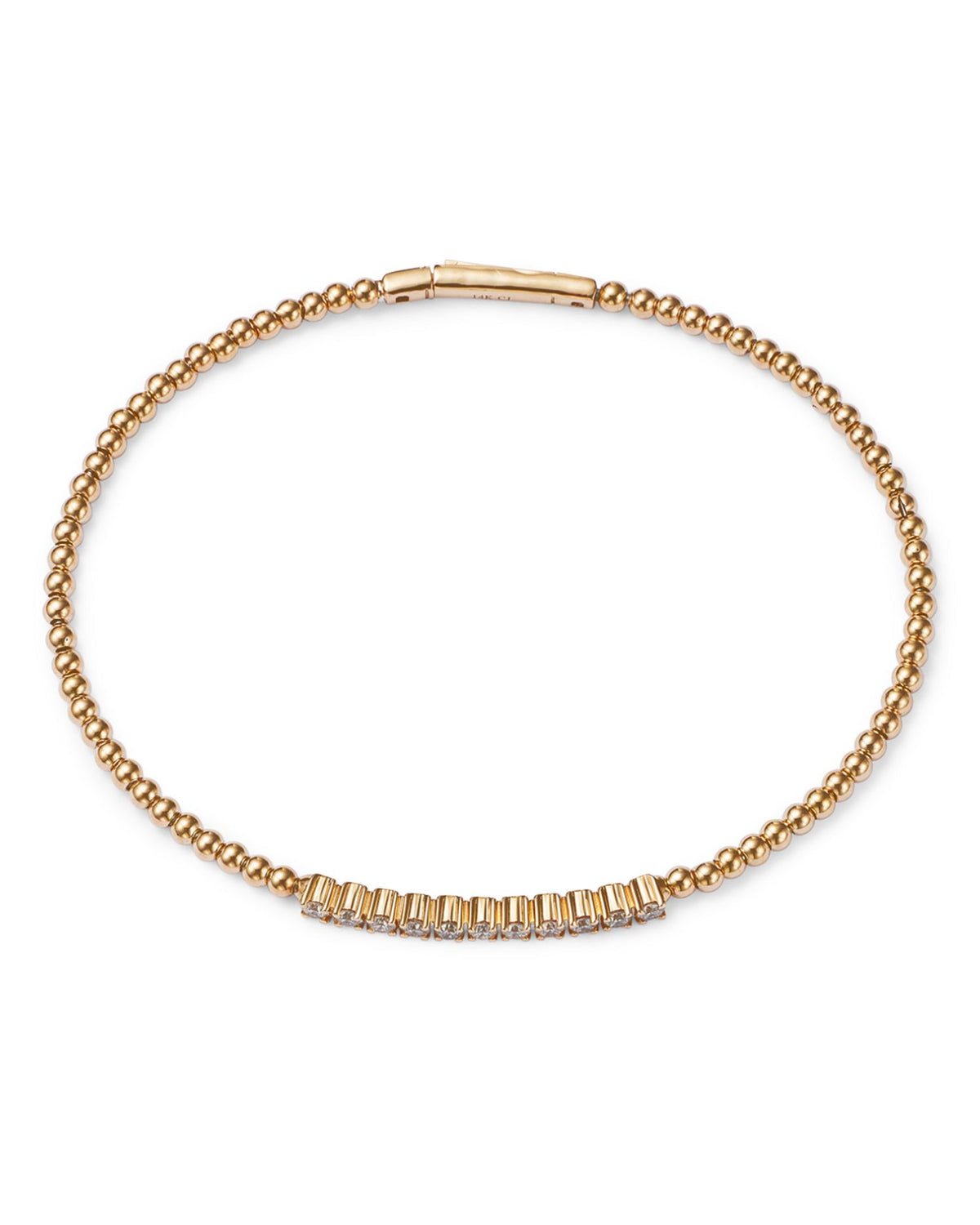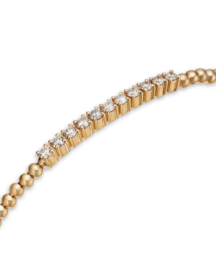 This Diamond Station Bangle Bracelet by Bloomingdale's Fine Collection combines elegance with modern craftsmanship. Featuring sparkling diamond stations and delicate beaded details, this piece adds a touch of glamour to any ensemble. Designed with a titanium wire interior for added strength and flexibility.