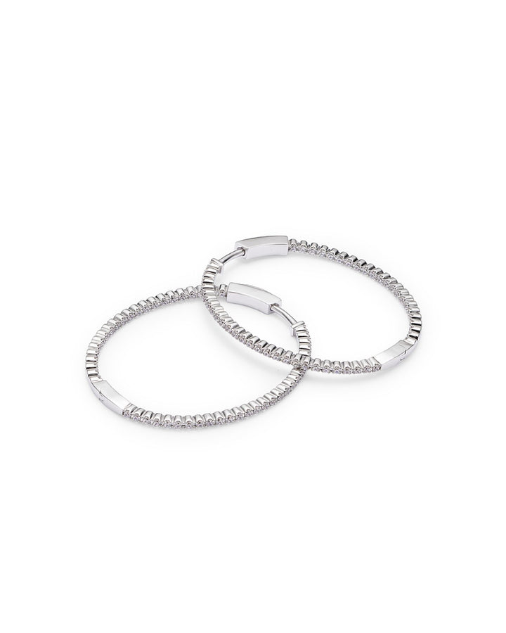 Diamond Oval Inside Out Medium Hoop Earrings in 14K White Gold, 1.0 ct. t.w.