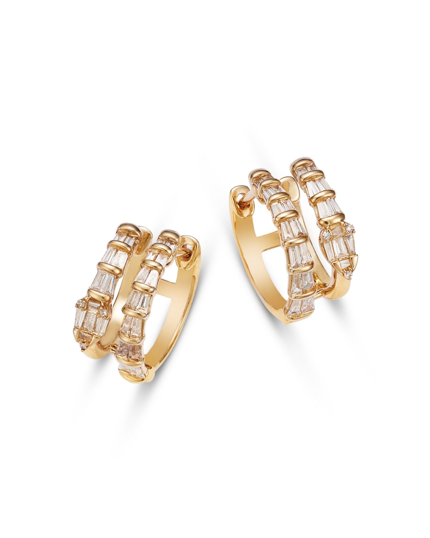 Diamond Round & Baguette Double Row Serpent Hoop Earrings in 14K Yellow Gold, 0.50 ct. t.w.