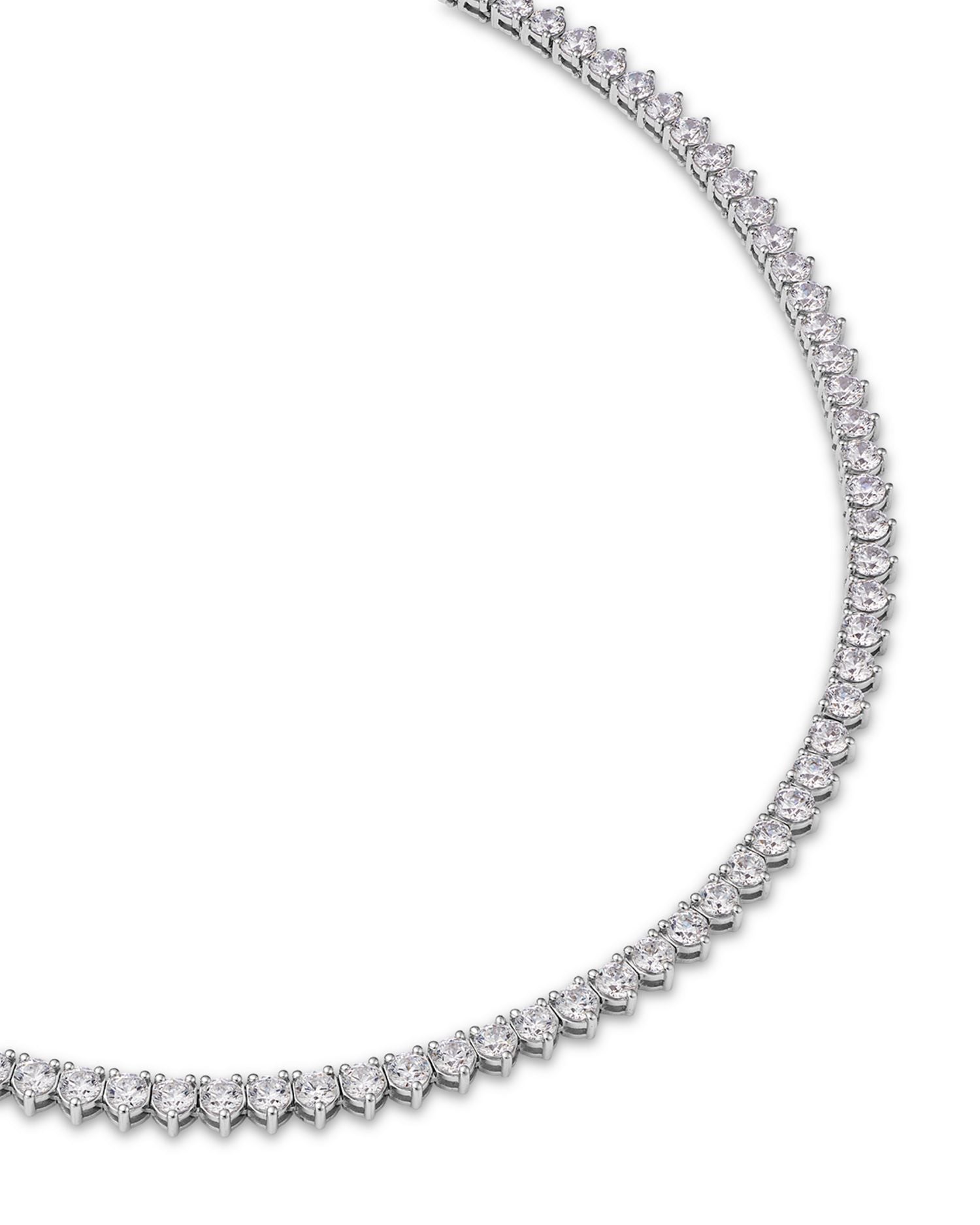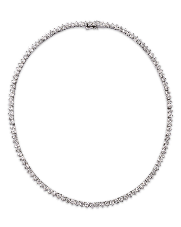 Handcrafted in 14K white gold with 15 ct. t.w. certified diamonds (color/clarity: F/I1). Length: 16.2' with box lock clasp closure. All gemstone carat weights (ct. t.w.) are approximate, with variance of 0.05 carat. White gold is surface-coated with rhodium to enhance metal color and shine; it may wear off over time requiring replating.