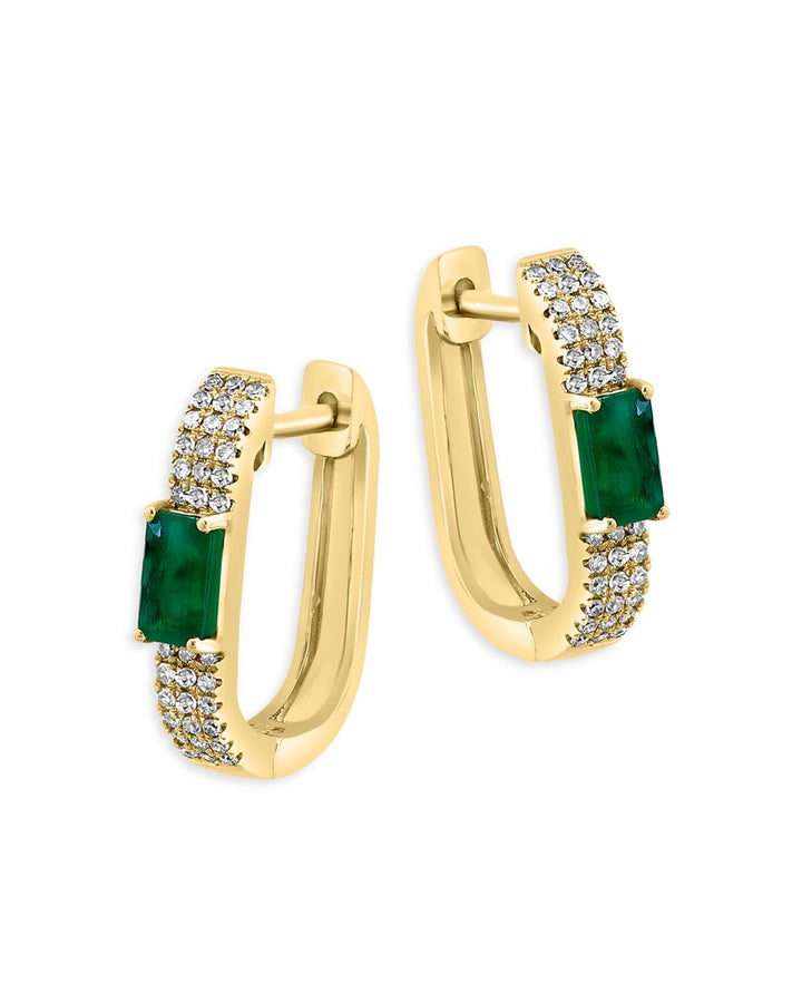 Emerald & Diamond Oval Hoop Earrings in 14K Yellow Gold