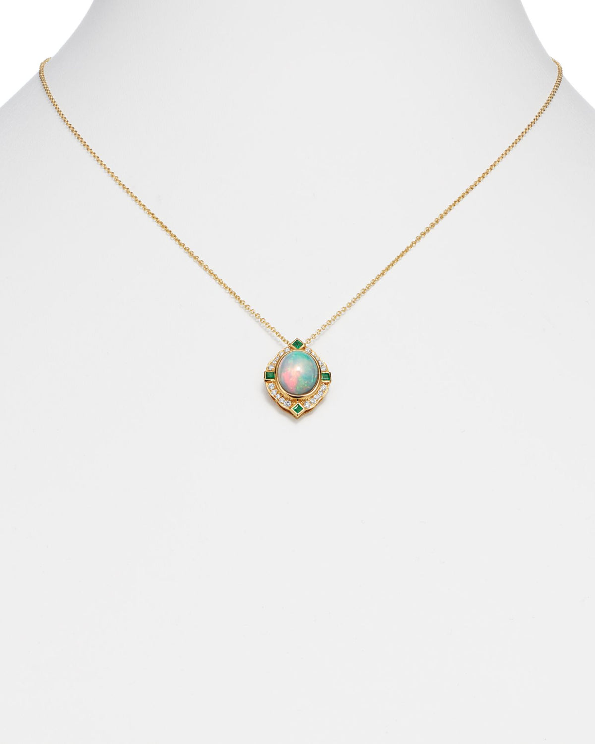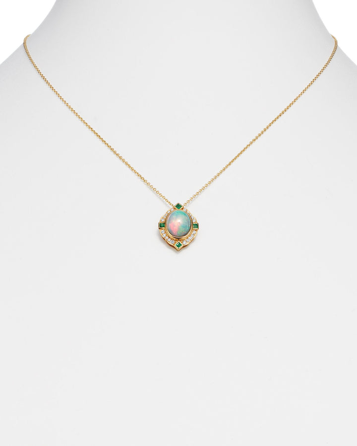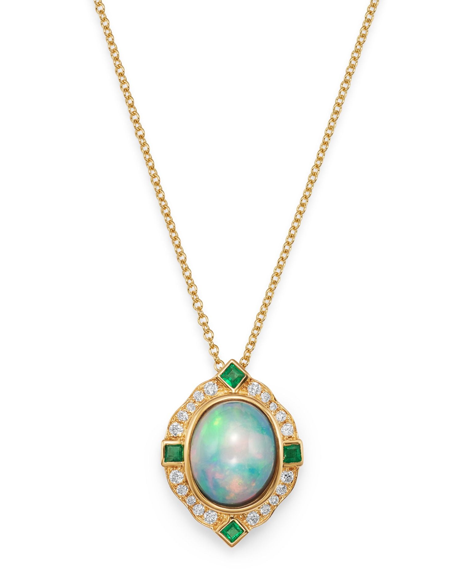 Ethiopian Opal, Emerald & Diamond Pendant Necklace in 14K Yellow Gold, 18' - Exclusive