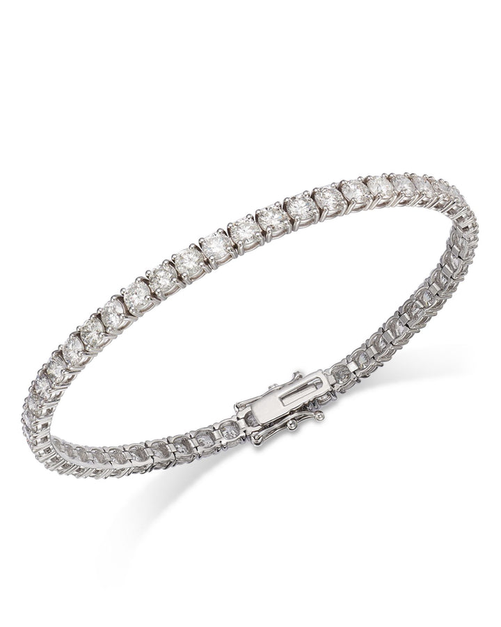 The Diamond Tennis Bracelet in 14K Gold, 8.0 ct. t.w. by Bloomingdale's Fine Collection showcases a stunning row of diamonds, with a total of 8 ct. t.w., set in your choice of 14K yellow or white gold. This classic tennis bracelet offers timeless elegance, perfect for both everyday wear and special occasions.