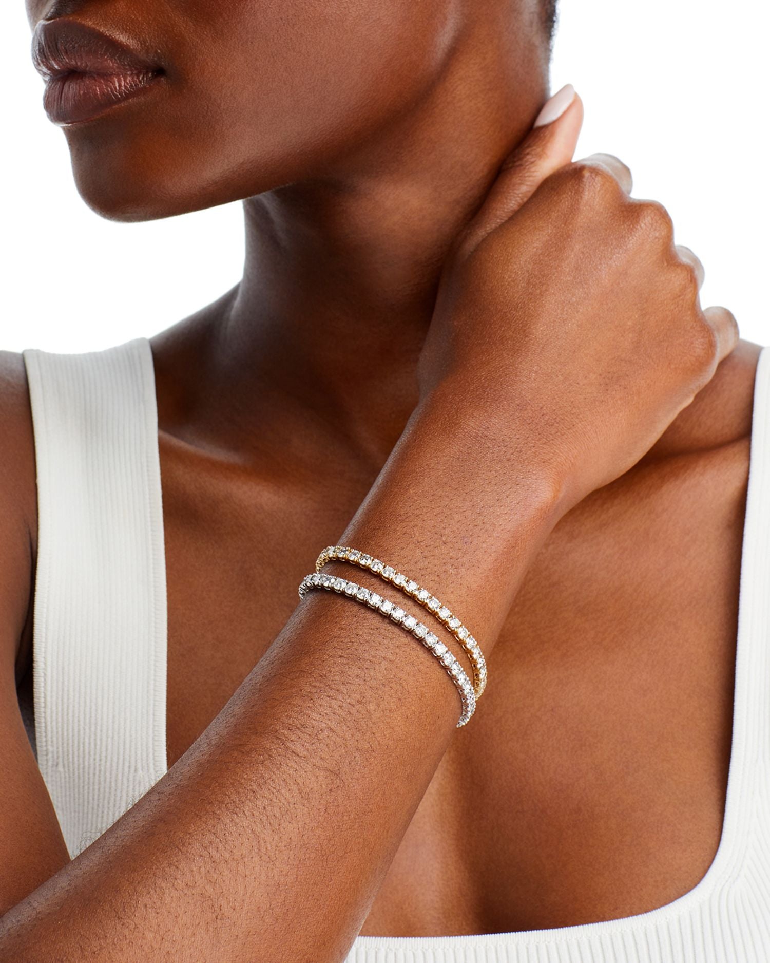 Handcrafted in 14K yellow gold or 14K white gold with 8 ct. t.w. diamonds (color/clarity: HI/I2). Length: 7'L with box lock clasp closure. All gemstone carat weights (ct. t.w.) are approximate, with variance of 0.05 carat.