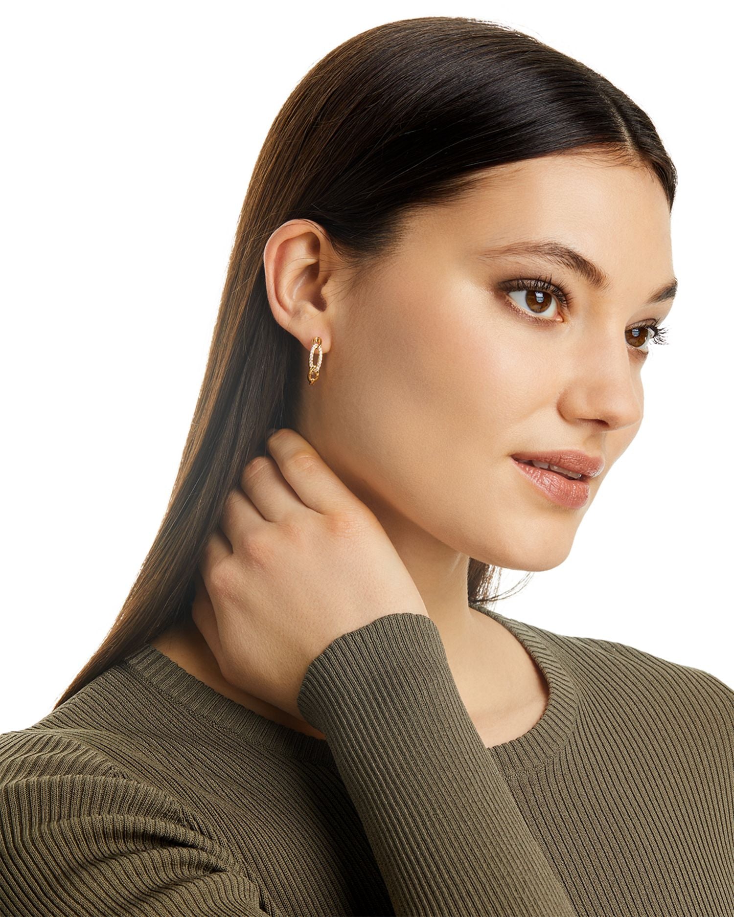 The Diamond Chain Link Small Hoop Earrings in 14K Yellow Gold, 0.25 ct. t.w. by Bloomingdale's Fine Collection are elegant small hoops adorned with sparkling diamonds set in chain-style links.