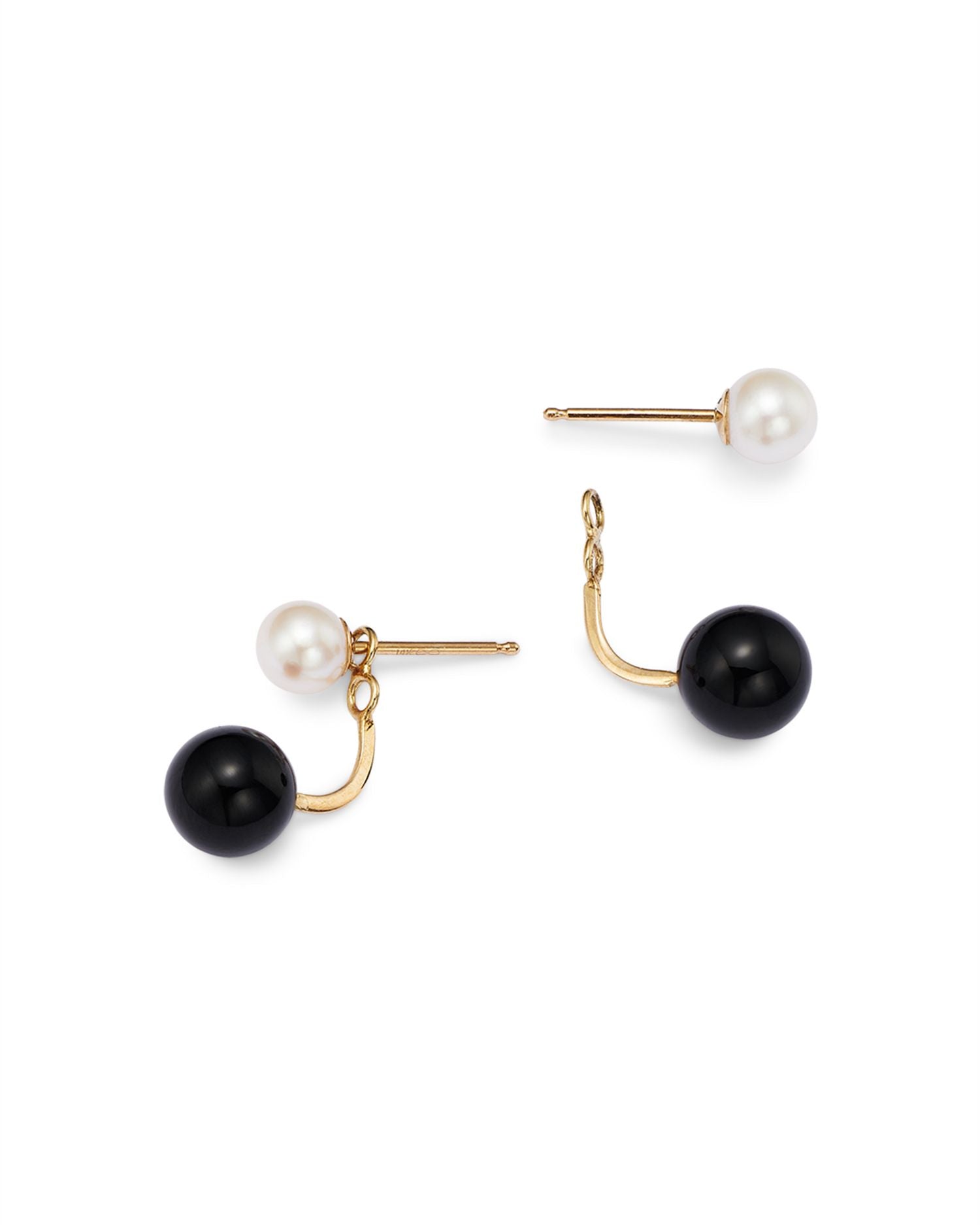 Onyx & Cultured Freshwater Pearl Front-to-Back Drop Earrings in 14K Yellow Gold - Exclusive