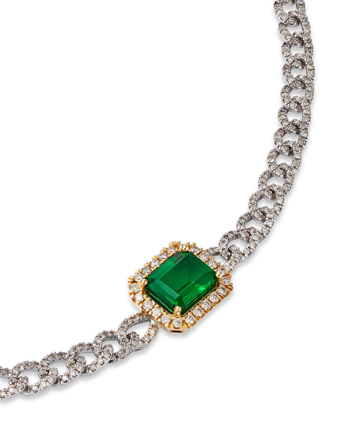 Emerald & Diamond Link Choker Necklace in 14k Yellow & White Gold, 14-18" - Exclusive