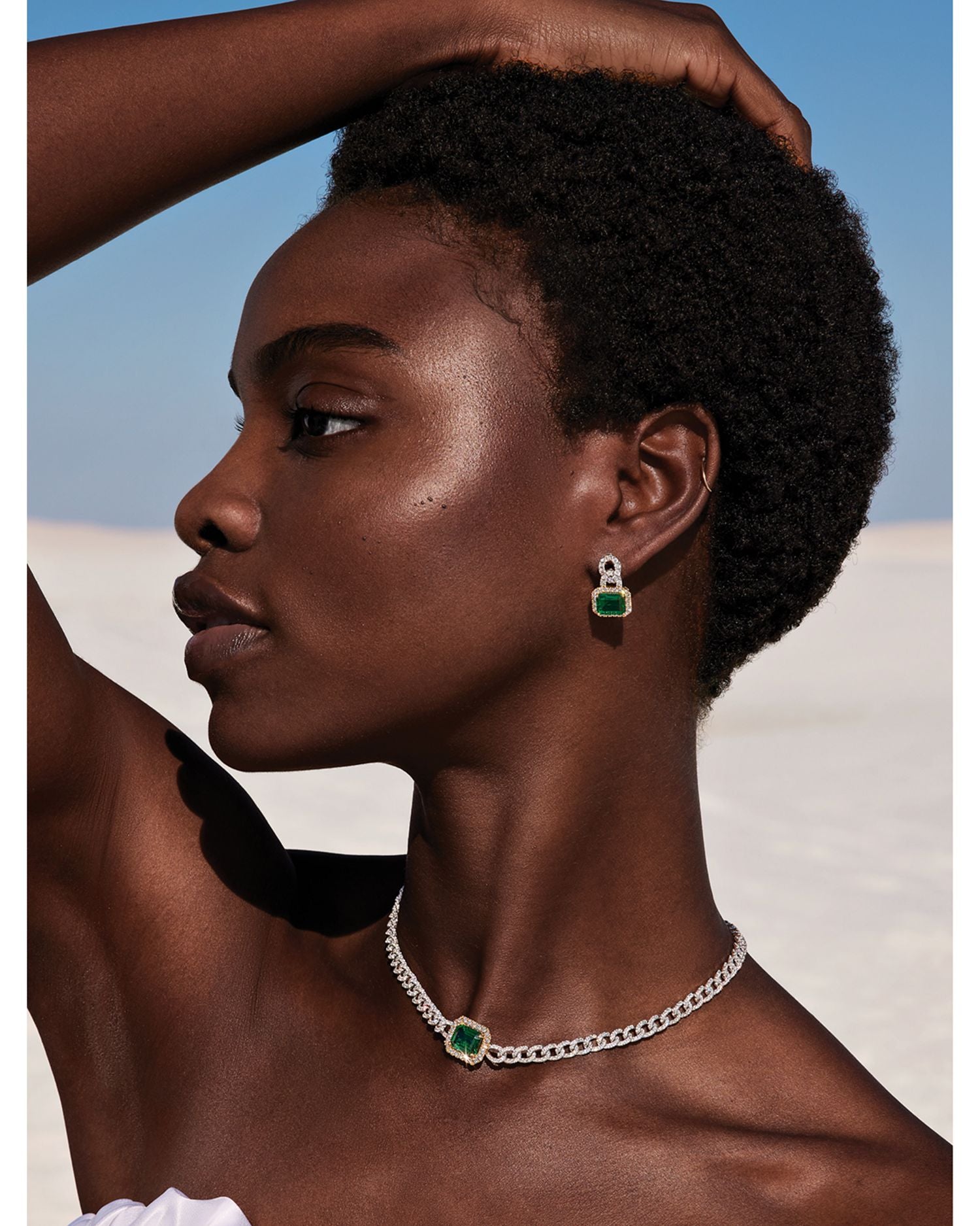 Emerald & Diamond Link Choker Necklace in 14K Yellow & White Gold from Bloomingdale's Fine Collection features an elegant emerald-cut emerald framed by sparkling diamonds. This pavé choker is a refined piece that combines vibrant green emeralds with the brilliance of diamonds, making it a standout for any occasion.