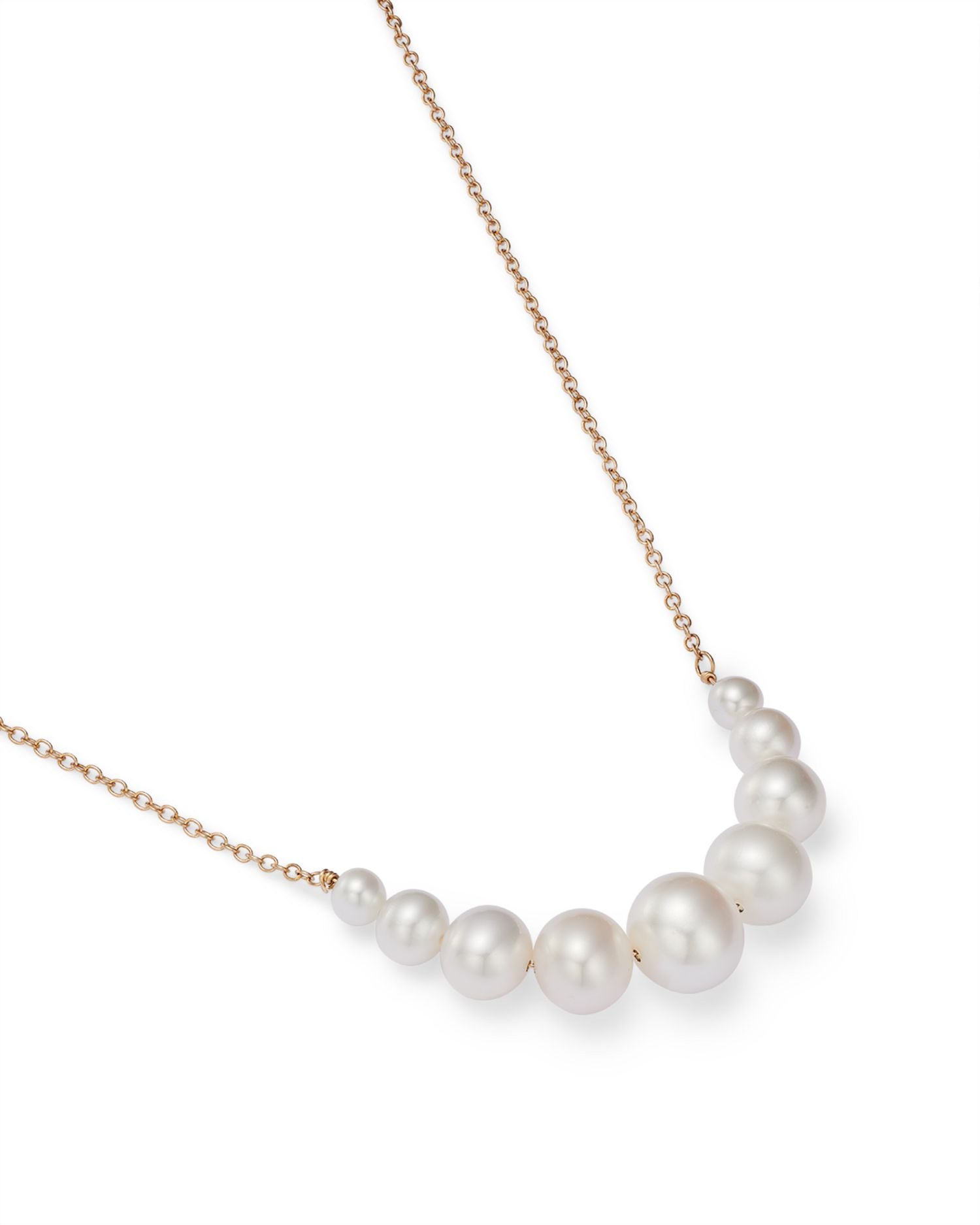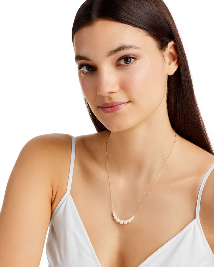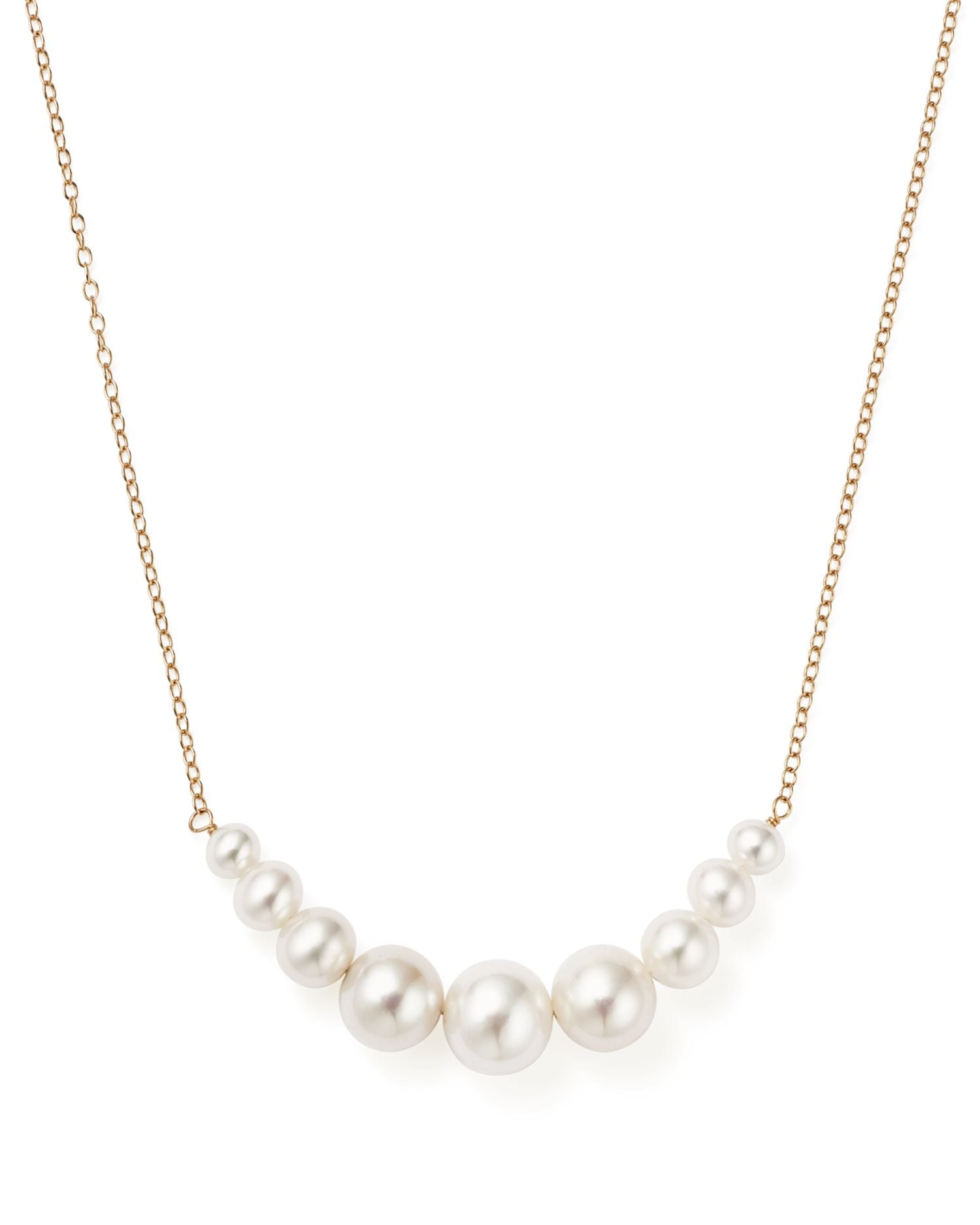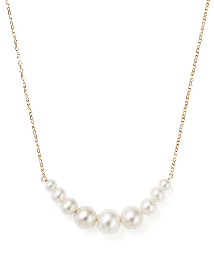 Handcrafted in 14K yellow gold with 4-8mm cultured freshwater pearls. 18' length with spring ring closure.