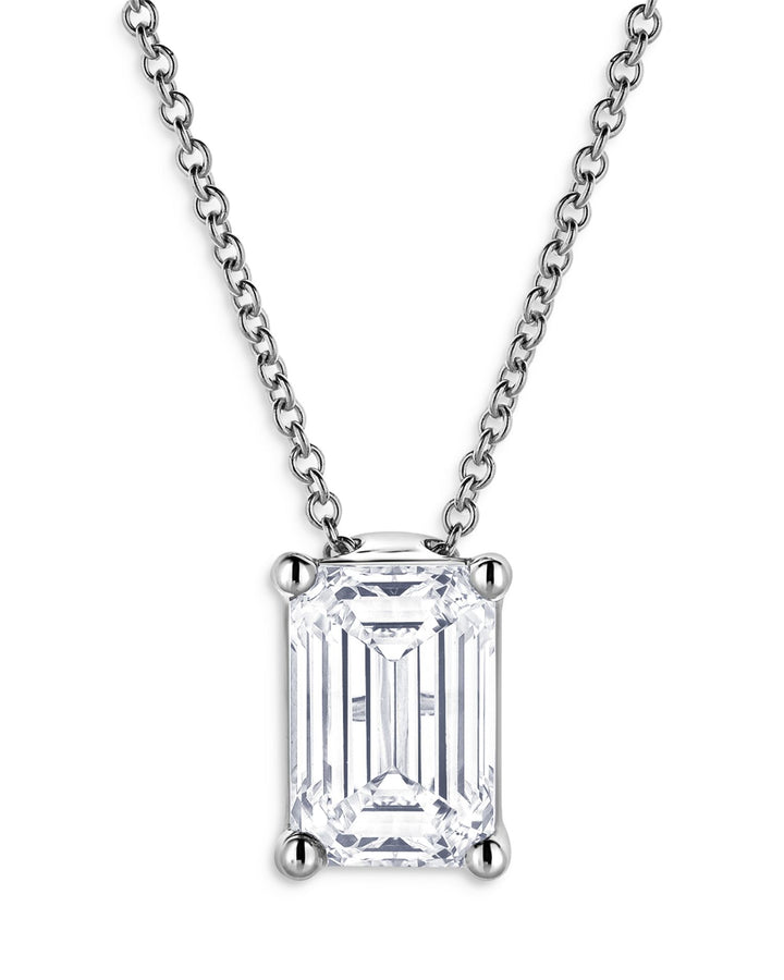 Certified Lab Grown Diamond Emerald Cut Pendant Necklace in 18K White Gold, 2.0 ct. t.w.