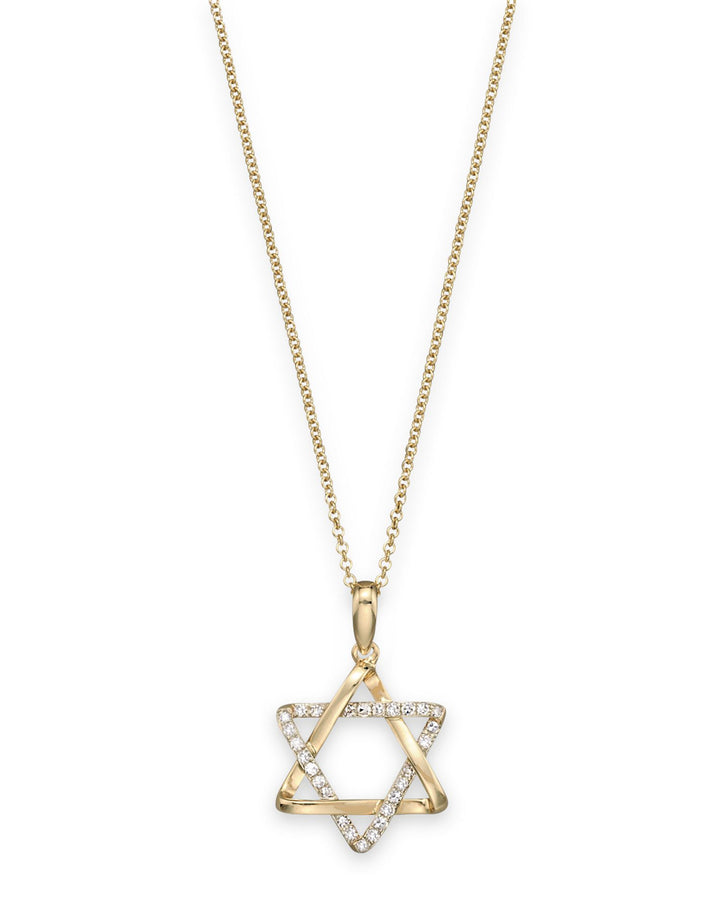 Diamond Star of David Pendant in 14K Yellow Gold, 0.10 ct. t.w. from Bloomingdale's Fine Collection features a meaningful Star of David pendant adorned with diamonds for a touch of sparkle. This necklace blends symbolism and elegance for a timeless look.