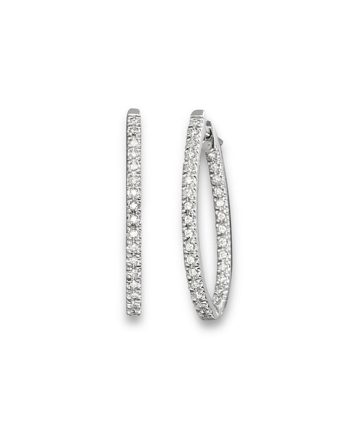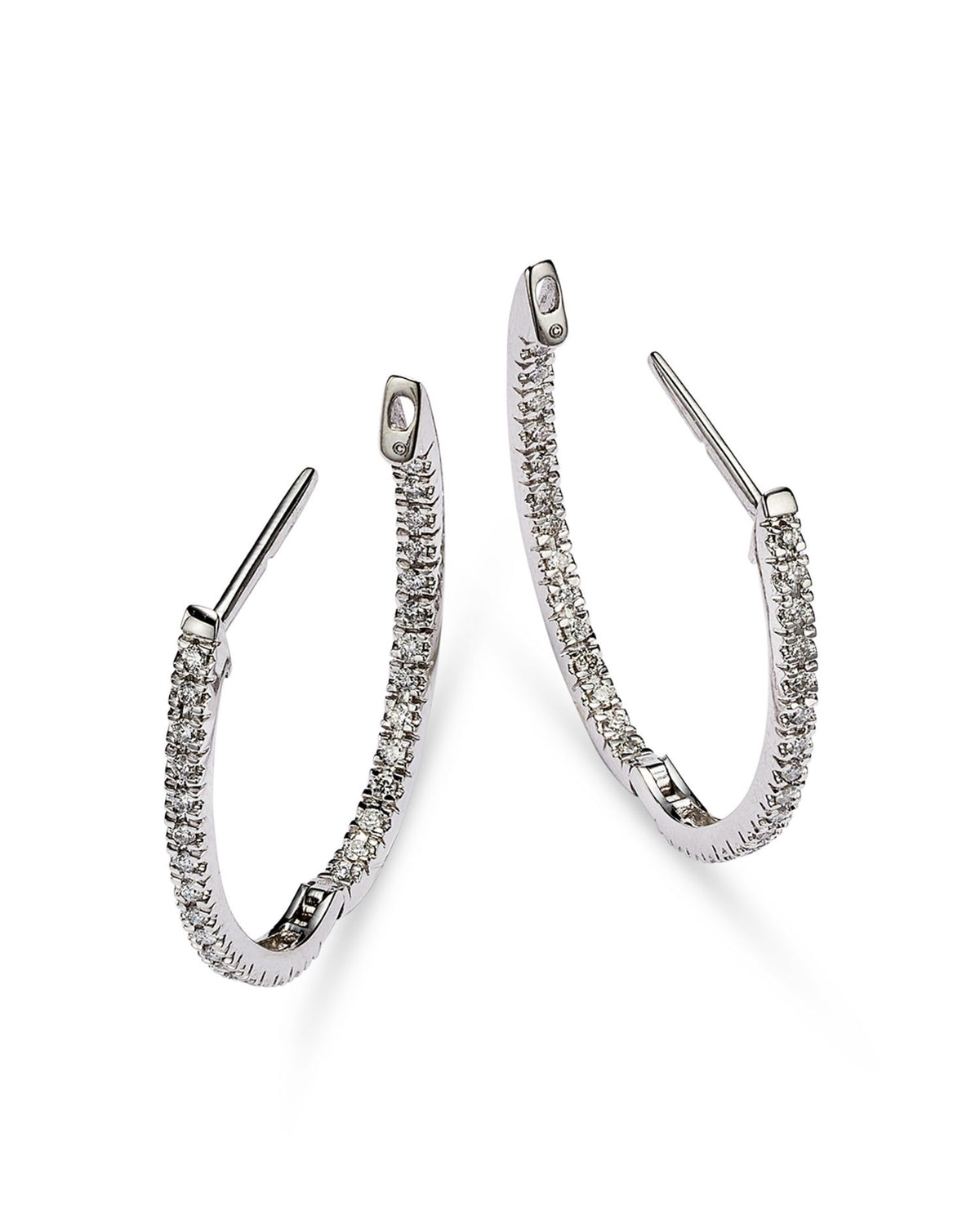 Inside-Out Diamond Hoop Earrings in 14K White Gold, 0.50 ct. t.w. from Bloomingdale's Fine Collection features prong-set, inside-out oval diamonds in a chic hoop design. These earrings add an elegant shine to your look with their 14K white gold setting.