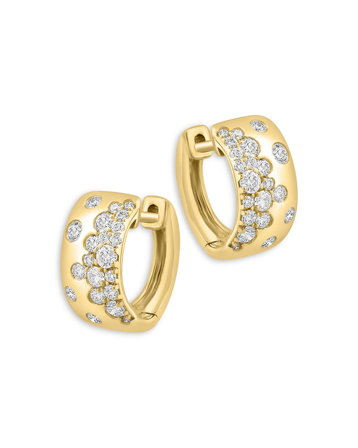 Scattered Diamond Huggie Hoop Earrings in 14K Yellow Gold, 0.5 ct. t.w. from Bloomingdale's Fine Collection features diamonds scattered across polished yellow gold huggie hoops. These earrings offer an enchanting sparkle for a timeless look.