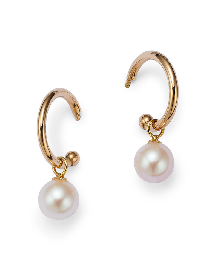 Cultured Freshwater Pearl Huggie Hoop Earrings in 14K Yellow Gold, 6mm from Bloomingdale's Fine Collection feature luminous cultured South Sea pearls swinging gracefully from elegant huggie hoops.