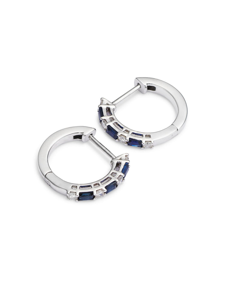 Sapphire & Diamond Huggie Hoop Earrings in 14K White Gold - Exclusive