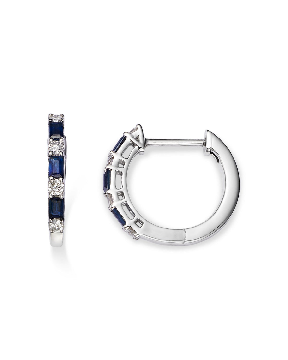 These Sapphire & Diamond Huggie Hoop Earrings by Bloomingdale's Fine Collection feature a stunning combination of sapphire baguettes and diamonds set in 14K white gold. The perfect blend of modern elegance and timeless sophistication, these earrings are designed to add a pop of color and sparkle to any ensemble. The blue sapphires symbolize wisdom and truth, while the diamonds bring an enduring brilliance that elevates the overall design. Ideal for both everyday wear and special occasions, these huggie hoops are a must-have addition to your jewelry collection.